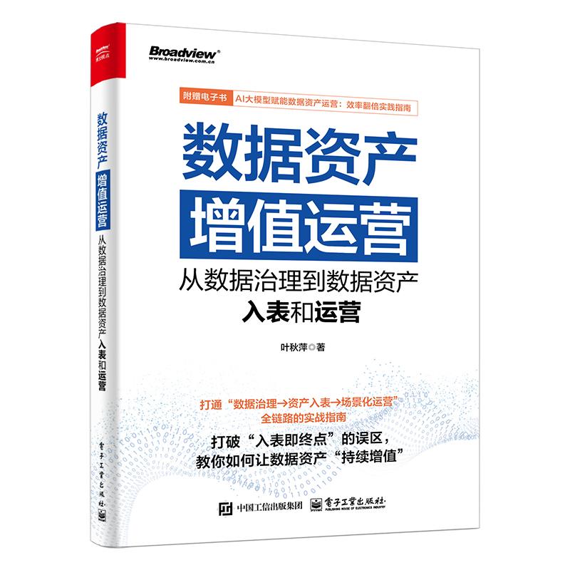 本书提供了完整的数据资产运营路径,从数据治理、数据资产入表到数据资产场景化应用 , 再到完整的数据资产运营,每个环节都有明确的实施路径及重点、难点。数据资产入表、管理和运营的核心是数据资产本身,法律、财务、评估等工作都围绕其展开。本书旨在从理论到实践、从案例到方法,全面梳理数据治理、数据资产入表、数据资产场景化及成体系运营的实施路径,将数据分析师、律师、会计师、资产评估师等跨专业的工作完整地进行整合,帮助读者构建系统性的数据资产运营框架。书适合所有对数据资产感兴趣的人士,无论你身处何种行业或担任何种职务。