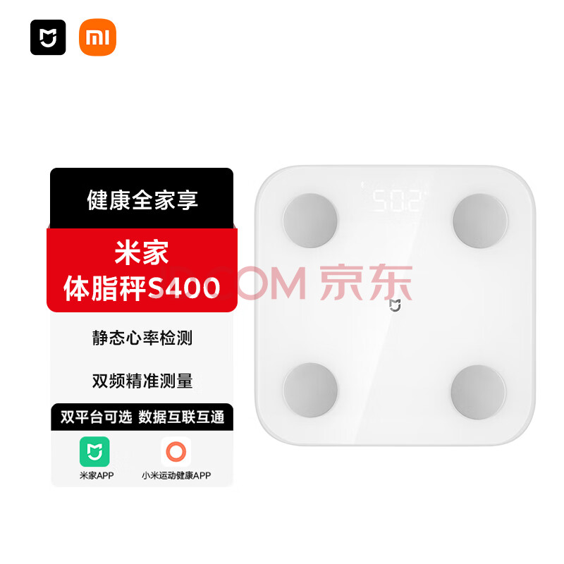 米家(MIJIA)小米智能体脂秤S400 白色 双接家用电子秤体重秤高精准25项身体数据平衡测试 塑形减脂 体重管理