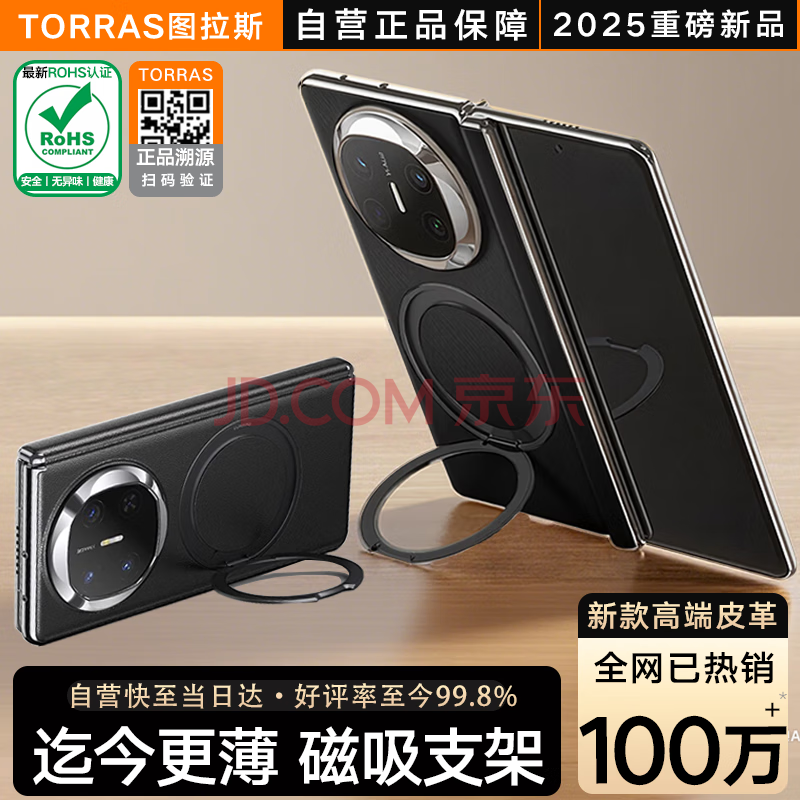 图拉斯O1S支点壳【无感支架丨迄今更薄】适用华为matex6手机壳折叠屏X6典藏版全包中轴保护素皮磁吸黑色