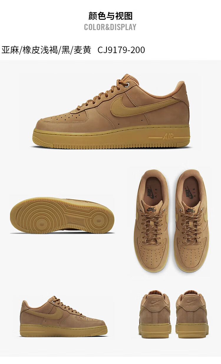 耐克NIKE男空军一号AF1 AIR FORCE 1运动鞋CJ9179-200小麦色44.5
