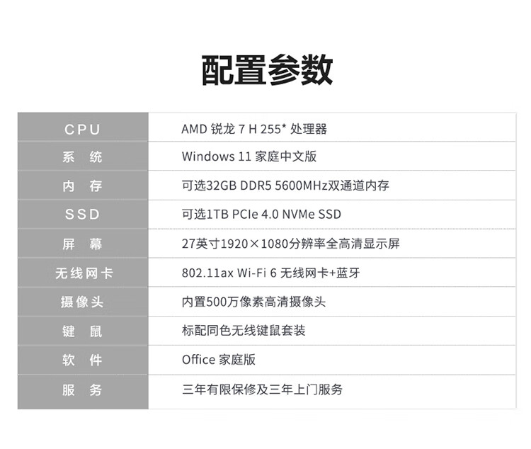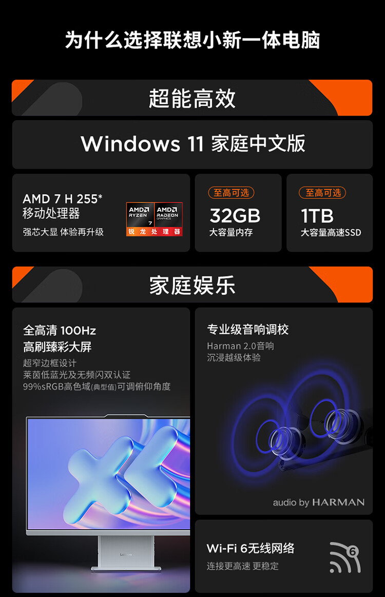 联想(Lenovo)小新一体台式机电脑27英寸(AMD R7 H255 3