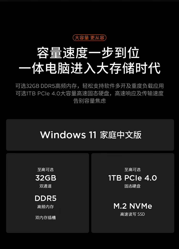 联想(Lenovo)小新一体台式机电脑27英寸(AMD R7 H255 32G 1TB SSD 摄像头 win11 )云影