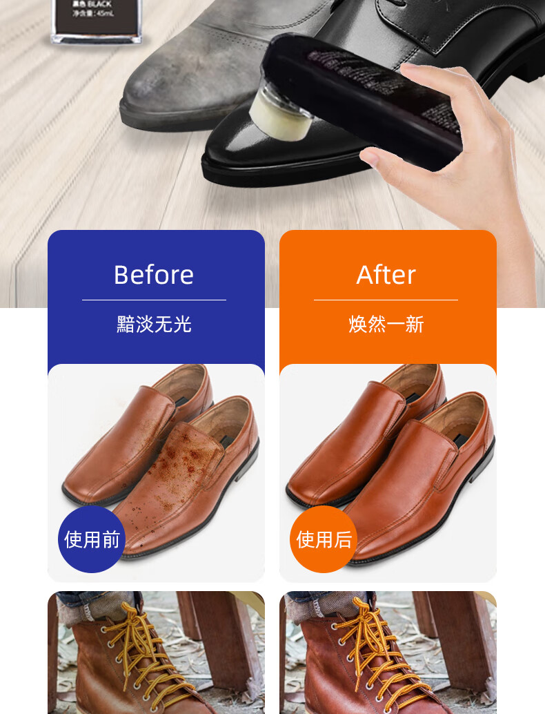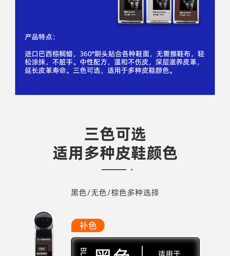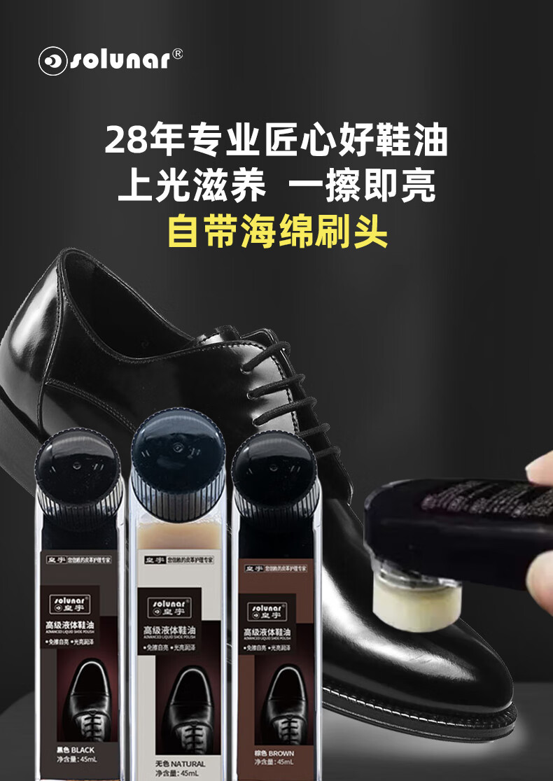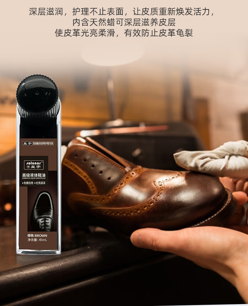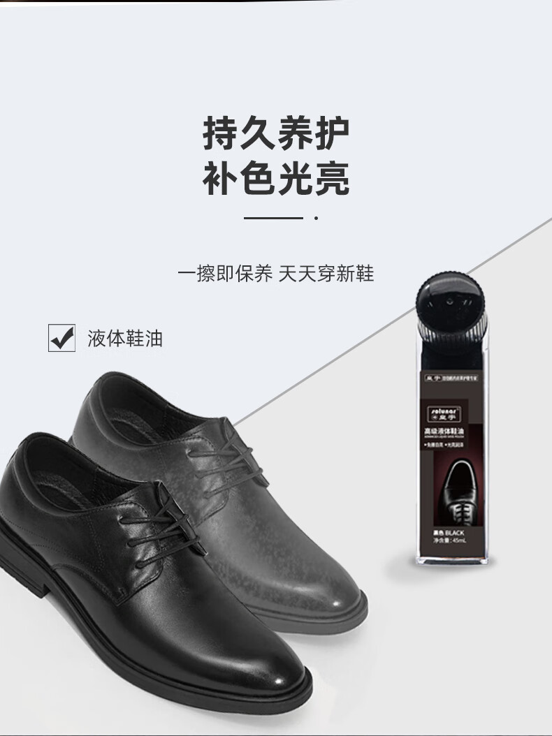 皇宇液体鞋油清洁防水去污补色上光保养皮鞋皮衣护理神器黑色45ml