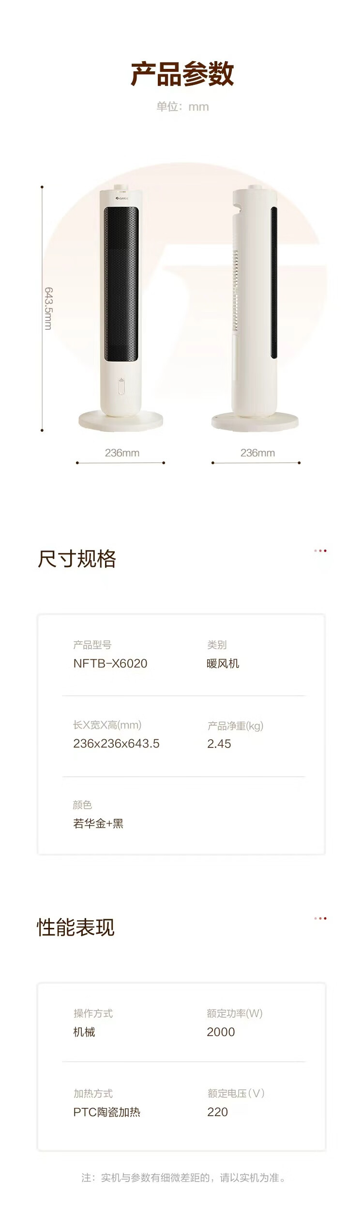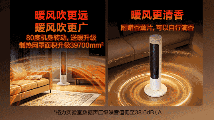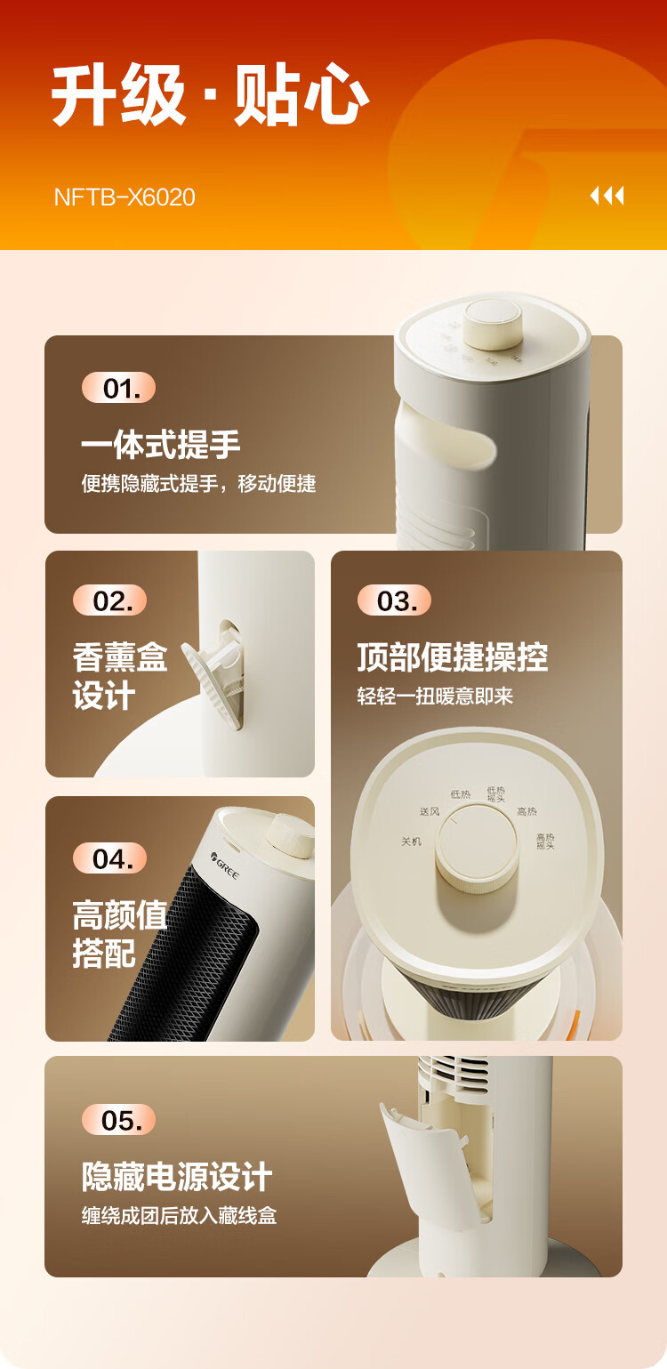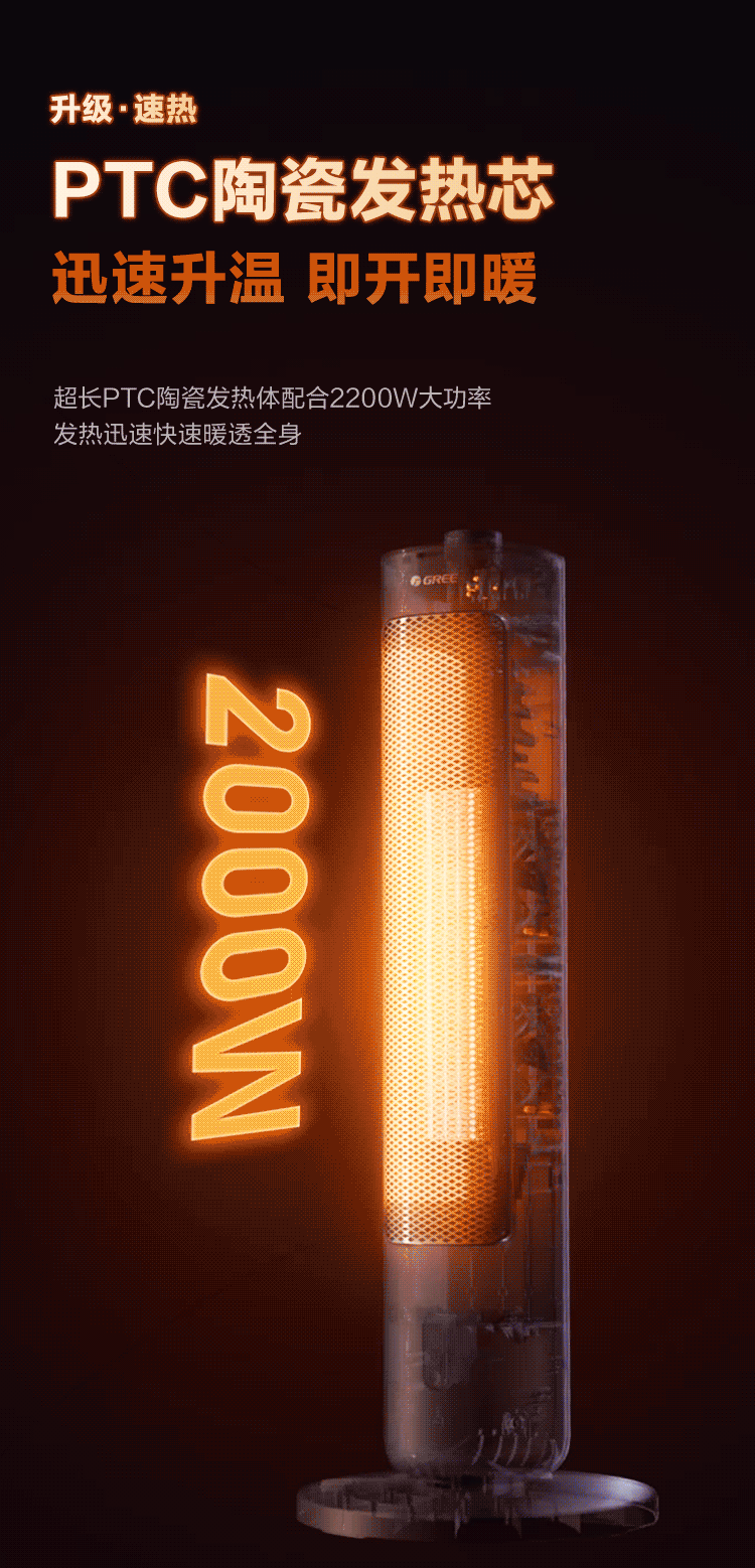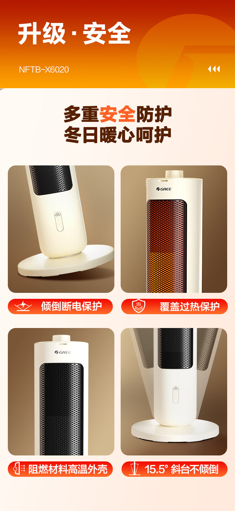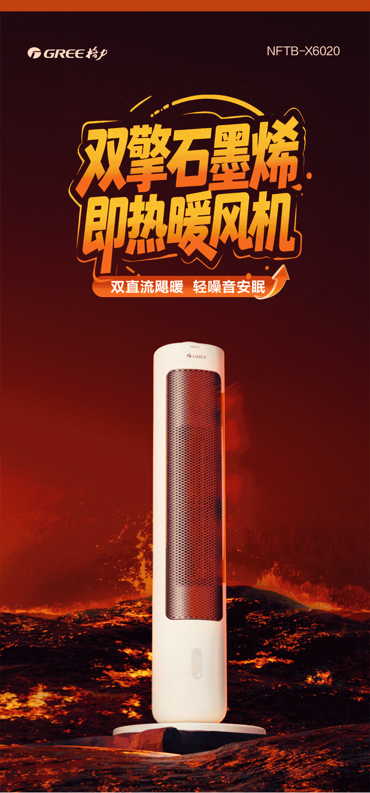格力(GREE)【许我耀眼推荐】直流变频双擎石墨烯暖风机 家用立式摇头取暖器 暖脚神器速热升温 NFTB-X6020