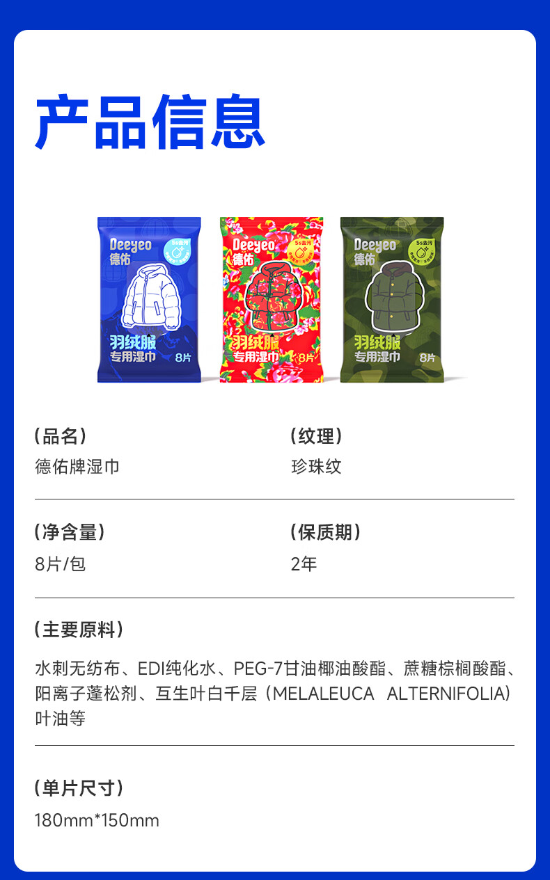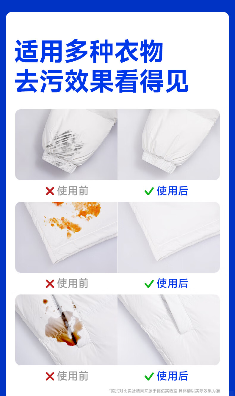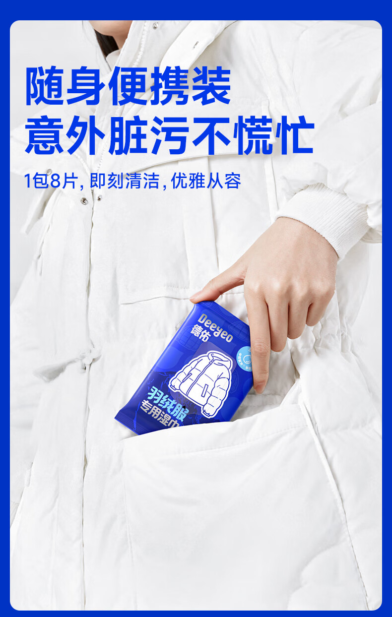 德佑羽绒服清洁湿巾8片*7包 便携小包 去渍免水洗 去污干洗神器
