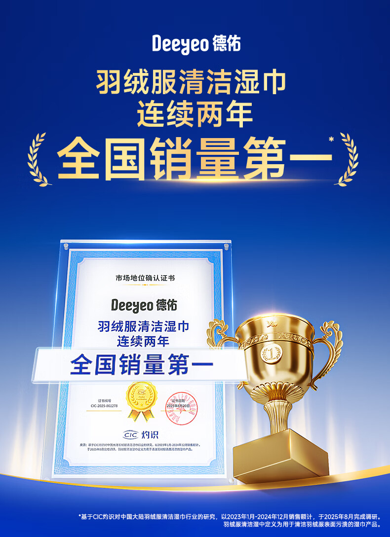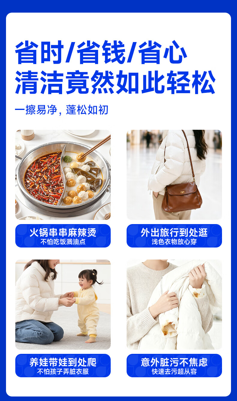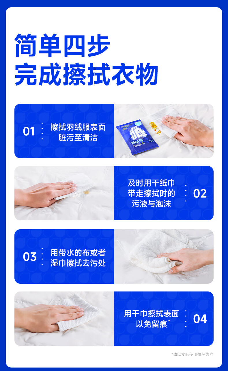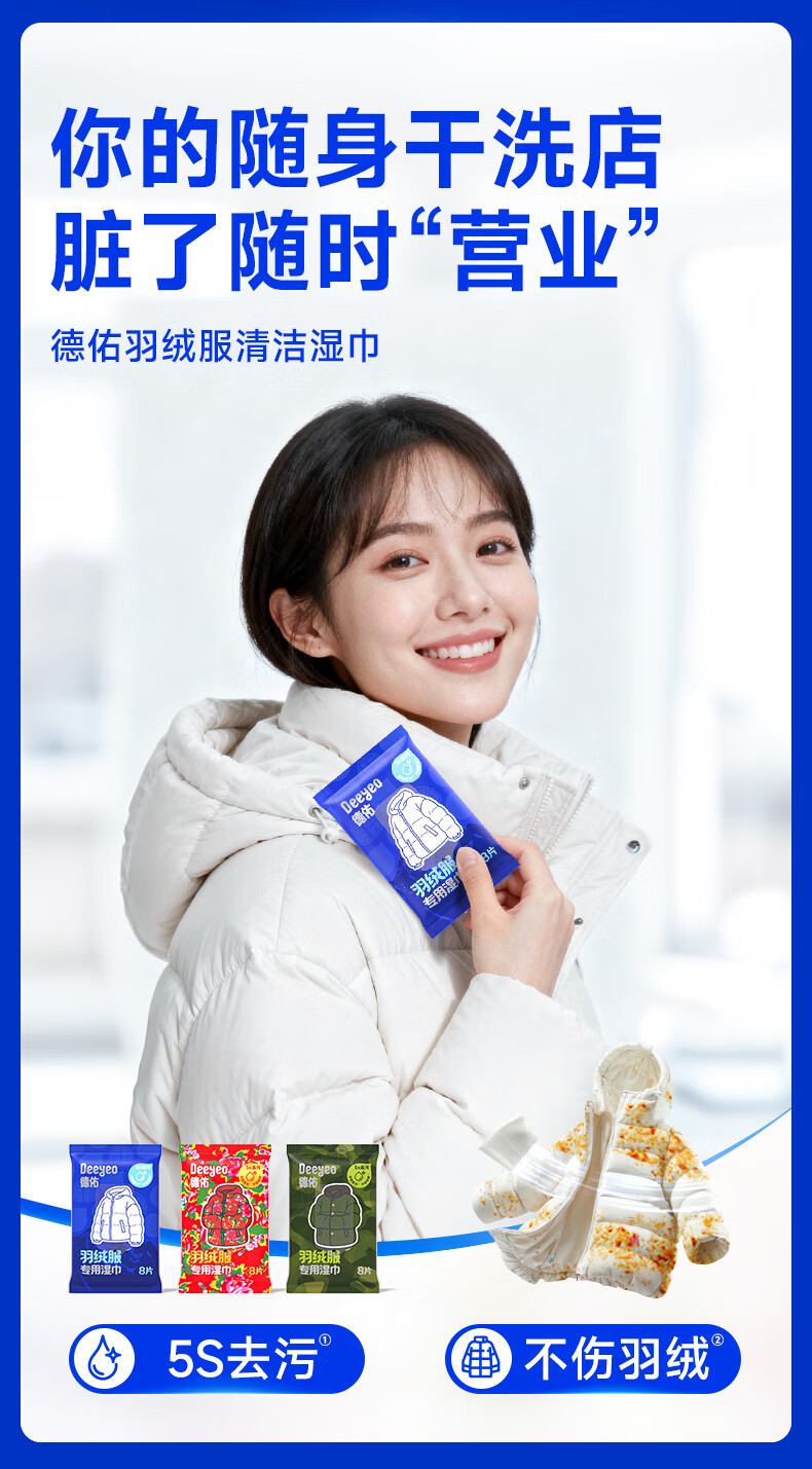 德佑羽绒服清洁湿巾8片*7包 便携小包 去渍免水洗 去污干洗神器