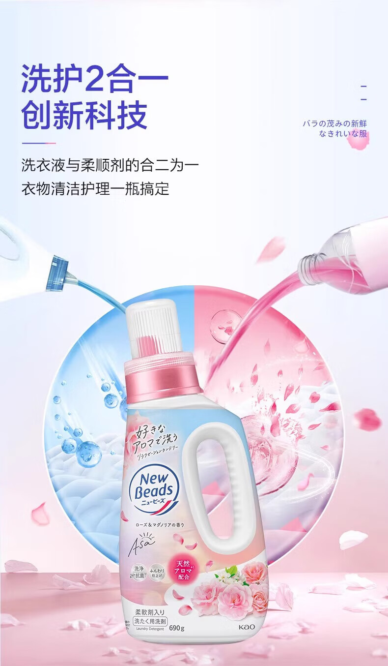 花王(KAO)柔软洗衣液690g+560g*2 衣物护色馨香洗衣剂持久留香含柔顺剂去污
