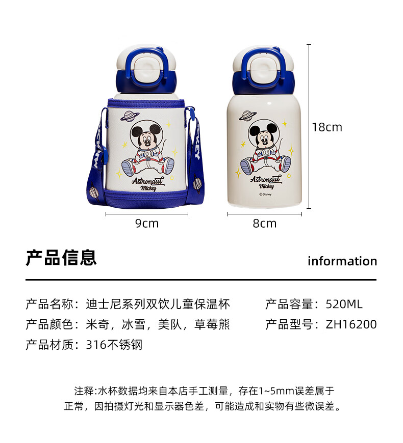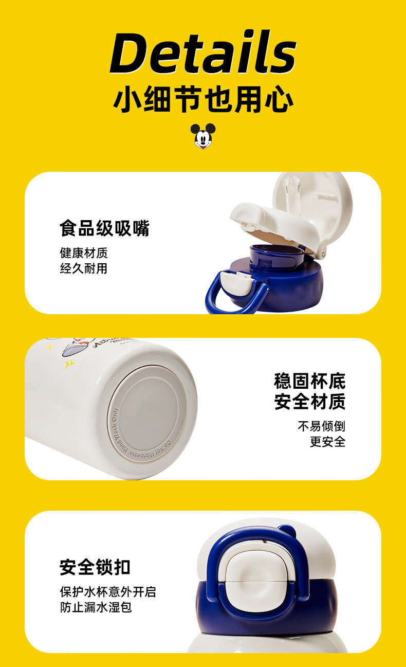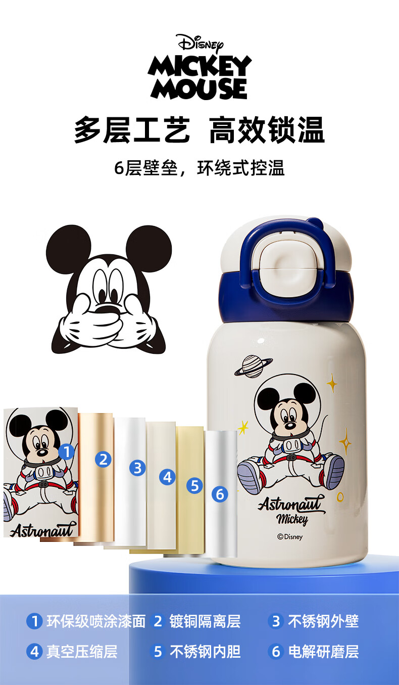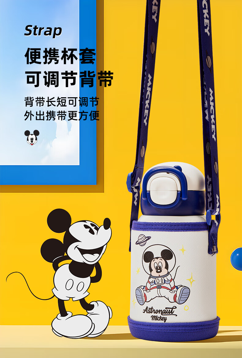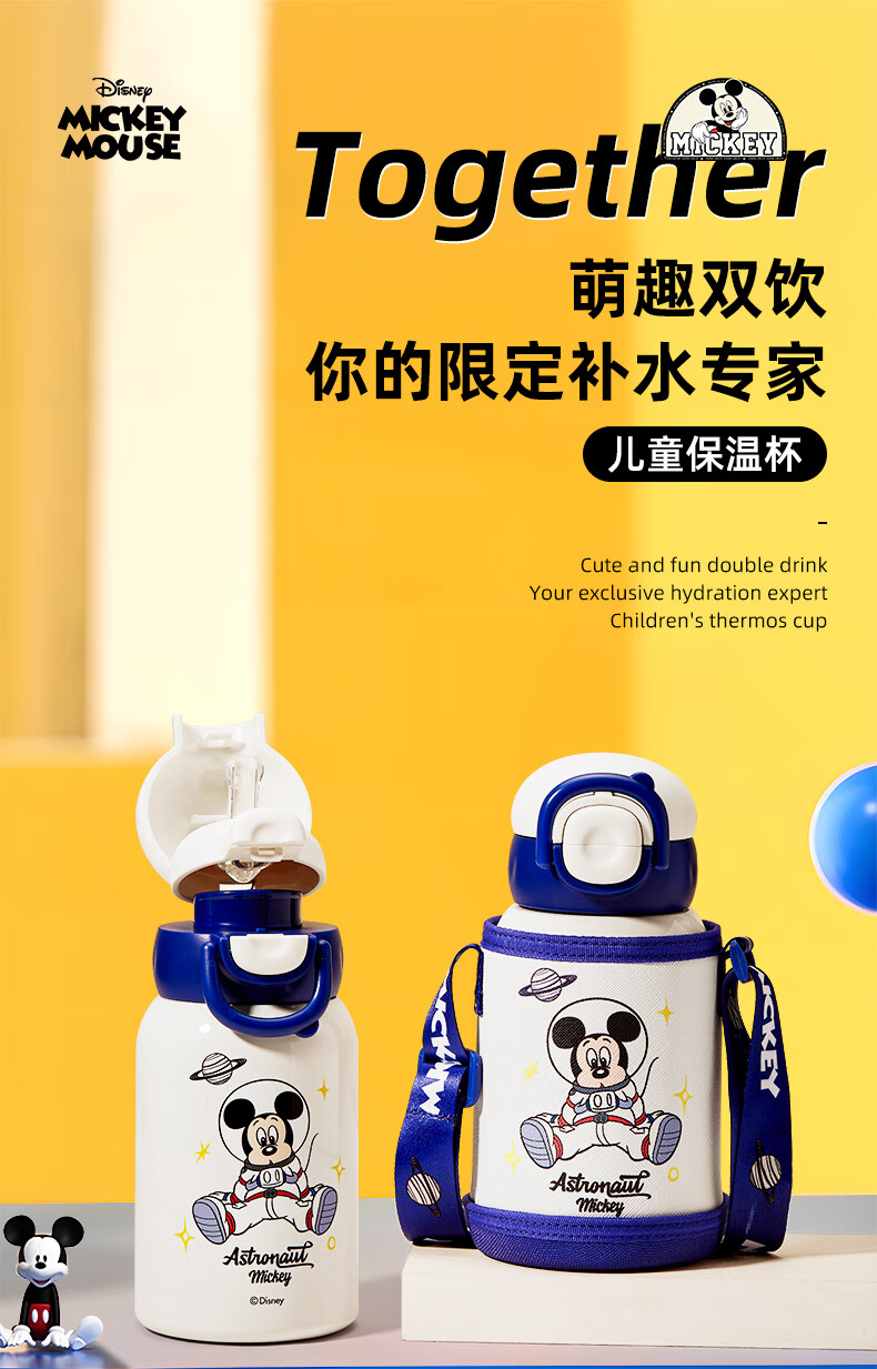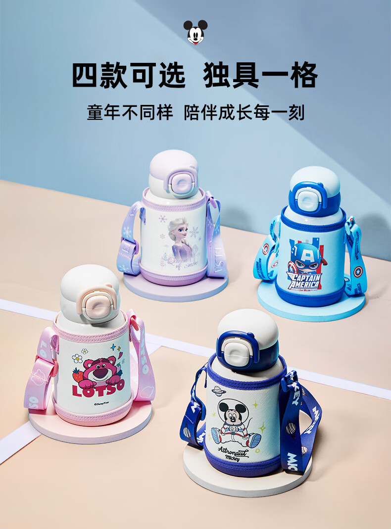 迪士尼保温杯儿童带吸管316不锈钢大容量弹盖男女小学生便携直饮水杯子