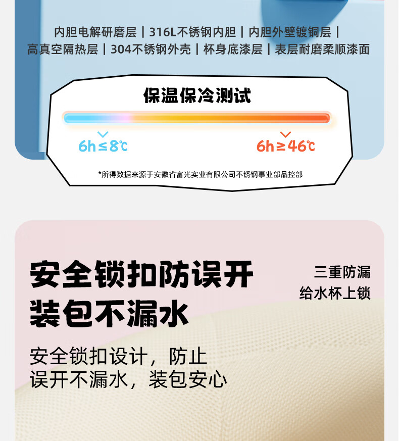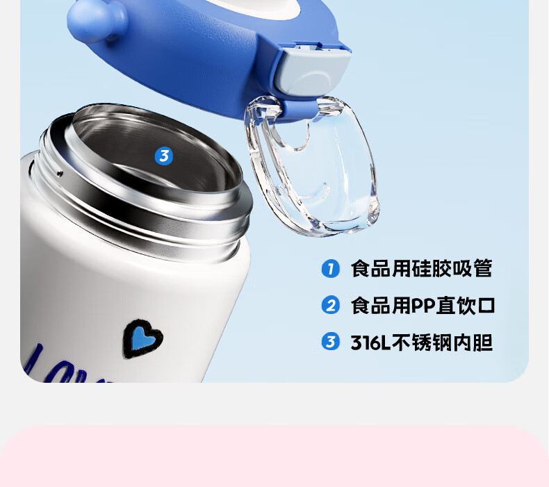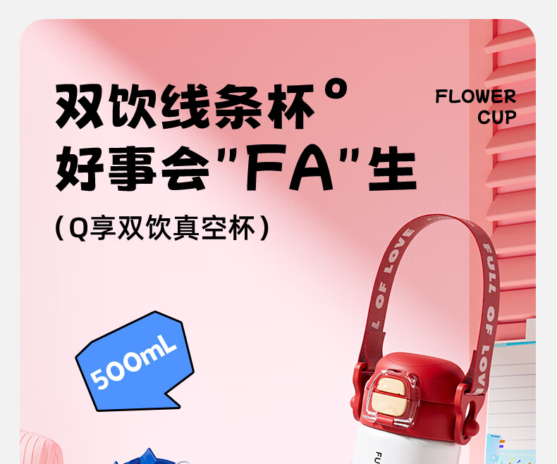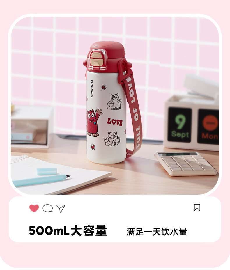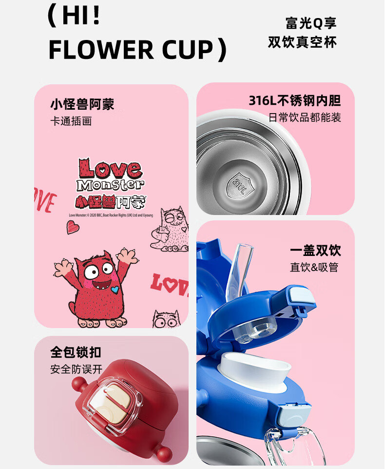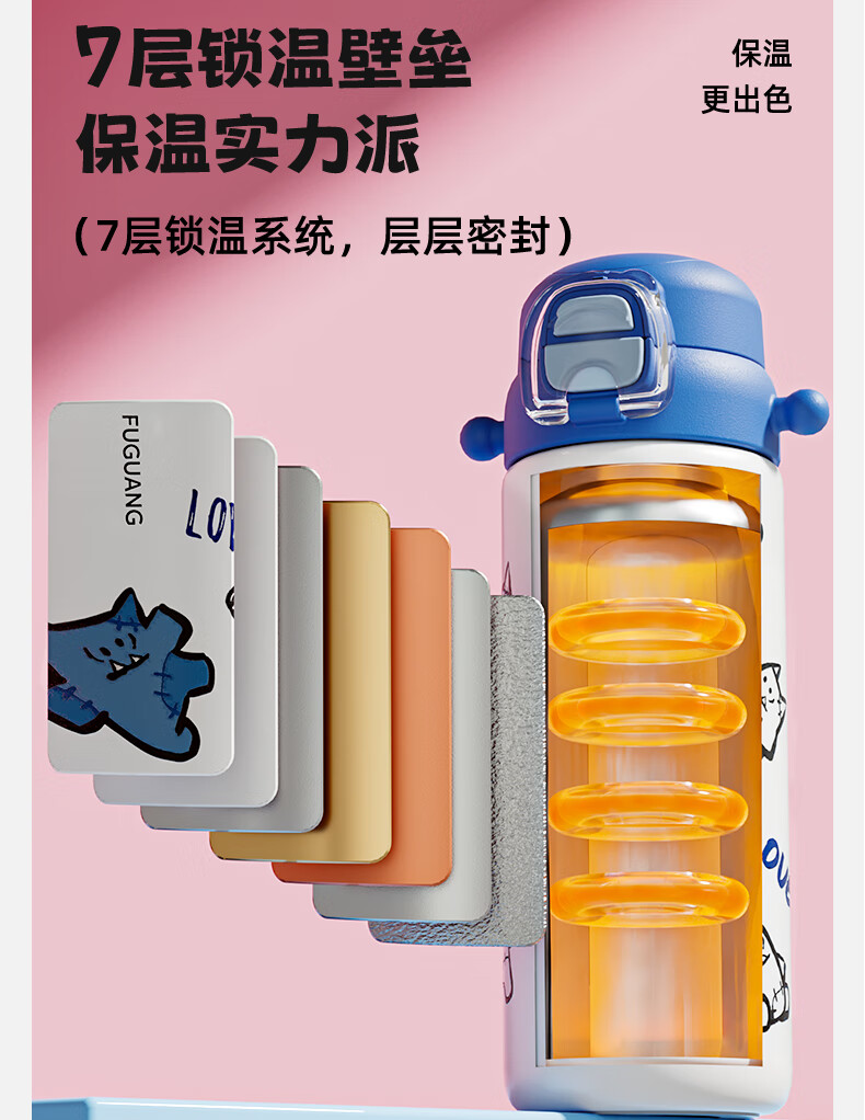 FGA富光儿童保温杯316L不锈钢学生高颜值男女士大容量吸管水杯子0.5L