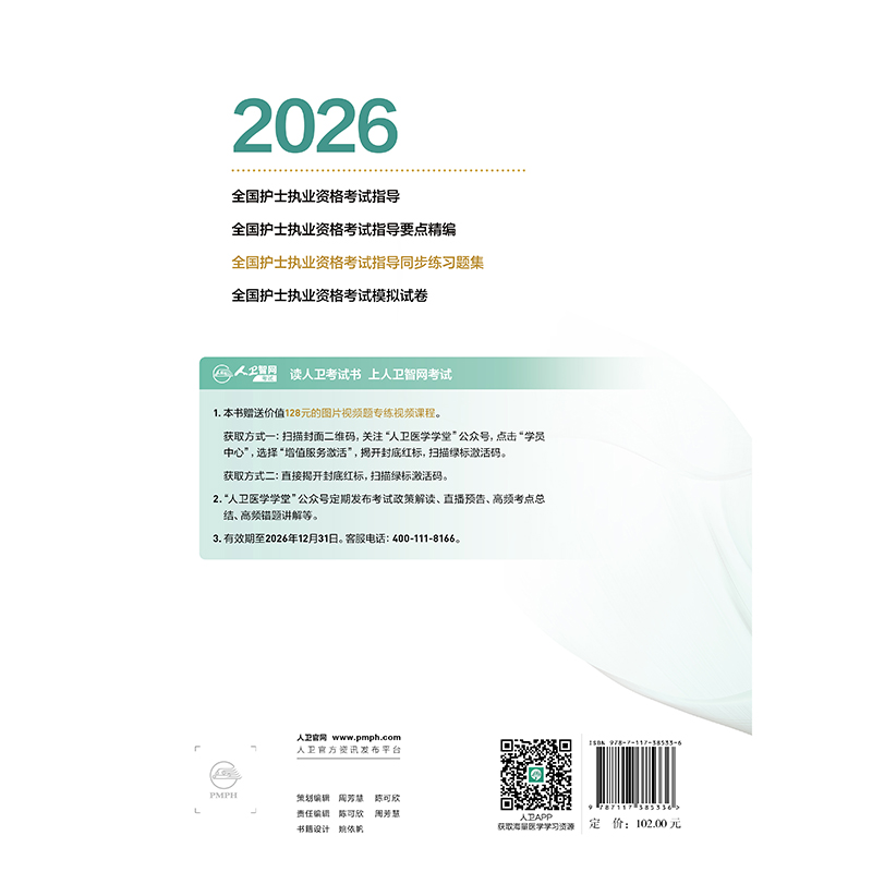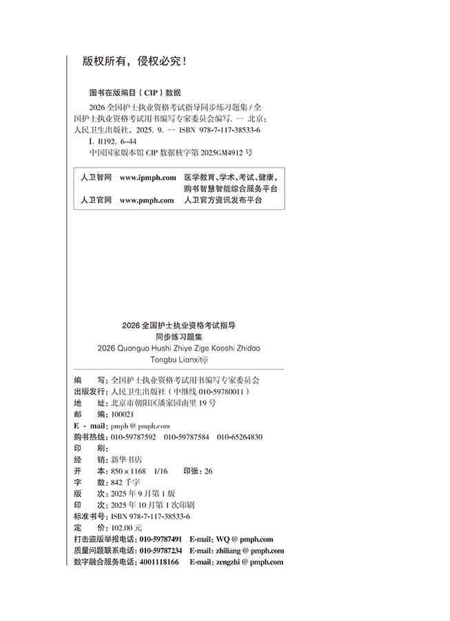 本书严格按照最新护士执业资格考试的具体要求,结合最新考试大纲,参考规划教材、国内外有关著作编写,作为国家卫生健康委人才交流服务中心推荐的护士执业资格考试用书。本套推荐用书共有4种,包括“考试指导”“考试指导要点精编”“同步练习题集”“模拟试卷”,便于不同复习阶段的考生复习备考,是国内具有权威性、指导性的护士执业资格考试用书。本书按照《2026全国护士执业资格考试指导》的章节排序,遵循科学、严谨、客观、规范的命题要求,依据最新考试大纲和考试要求、考试题型编写。考题模拟临床情景,着重考查考生的护理专业知识和临床实践能力。建议考生与《考试指导》配合使用,随学随测,及时有效地检验复习成果,强化记忆。其中,部分重点、难点习题附详细解析、考点分析、答题思路和方法,帮助考生尽快理解和掌握相关知识。
