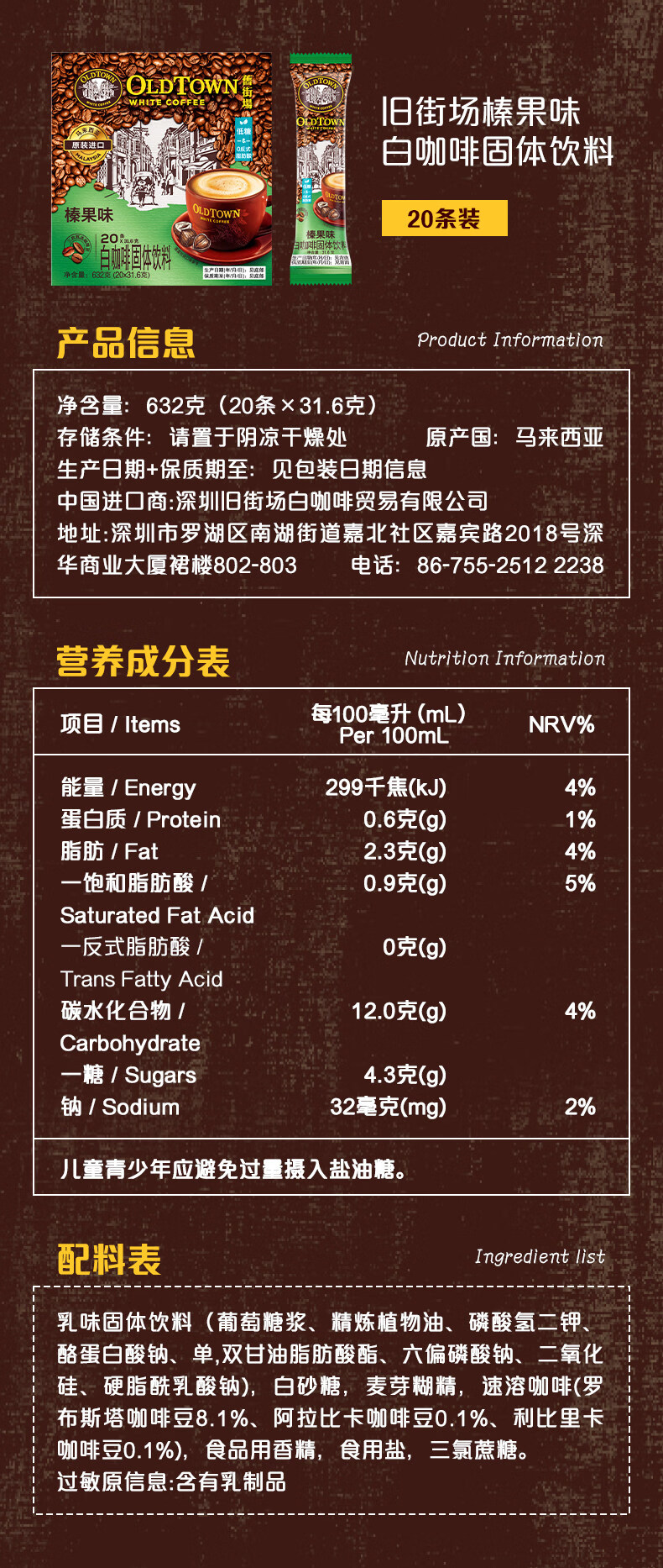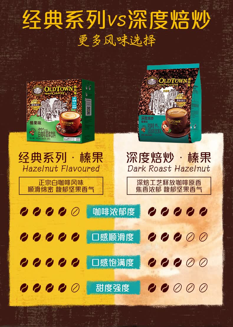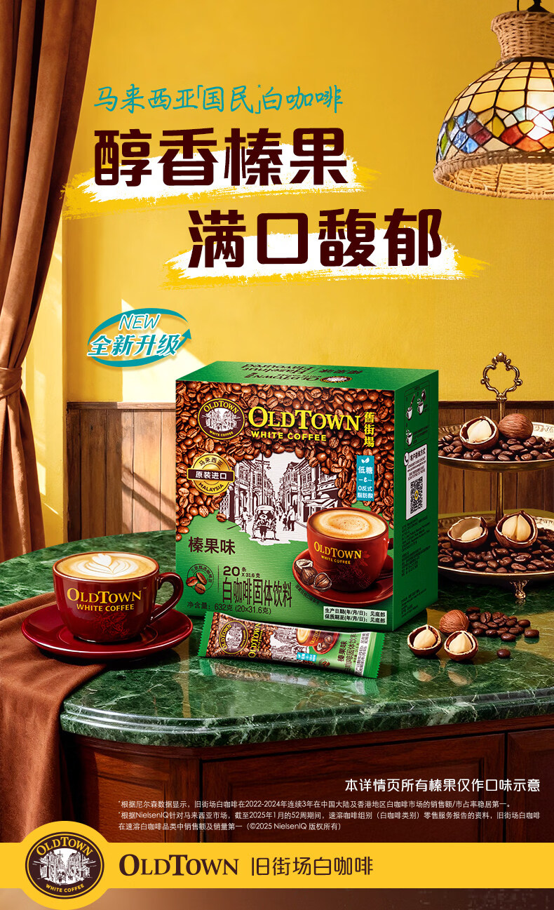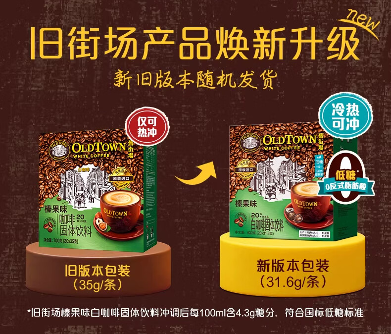 旧街场(OLDTOWN)速溶榛果味白咖啡马来西亚进口三合一老街咖啡粉31.6g/35g*20条