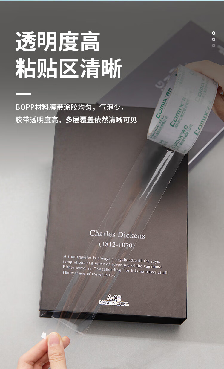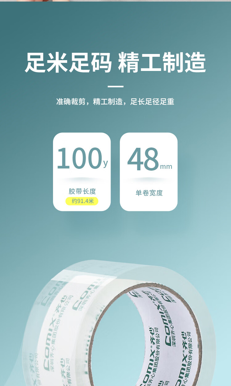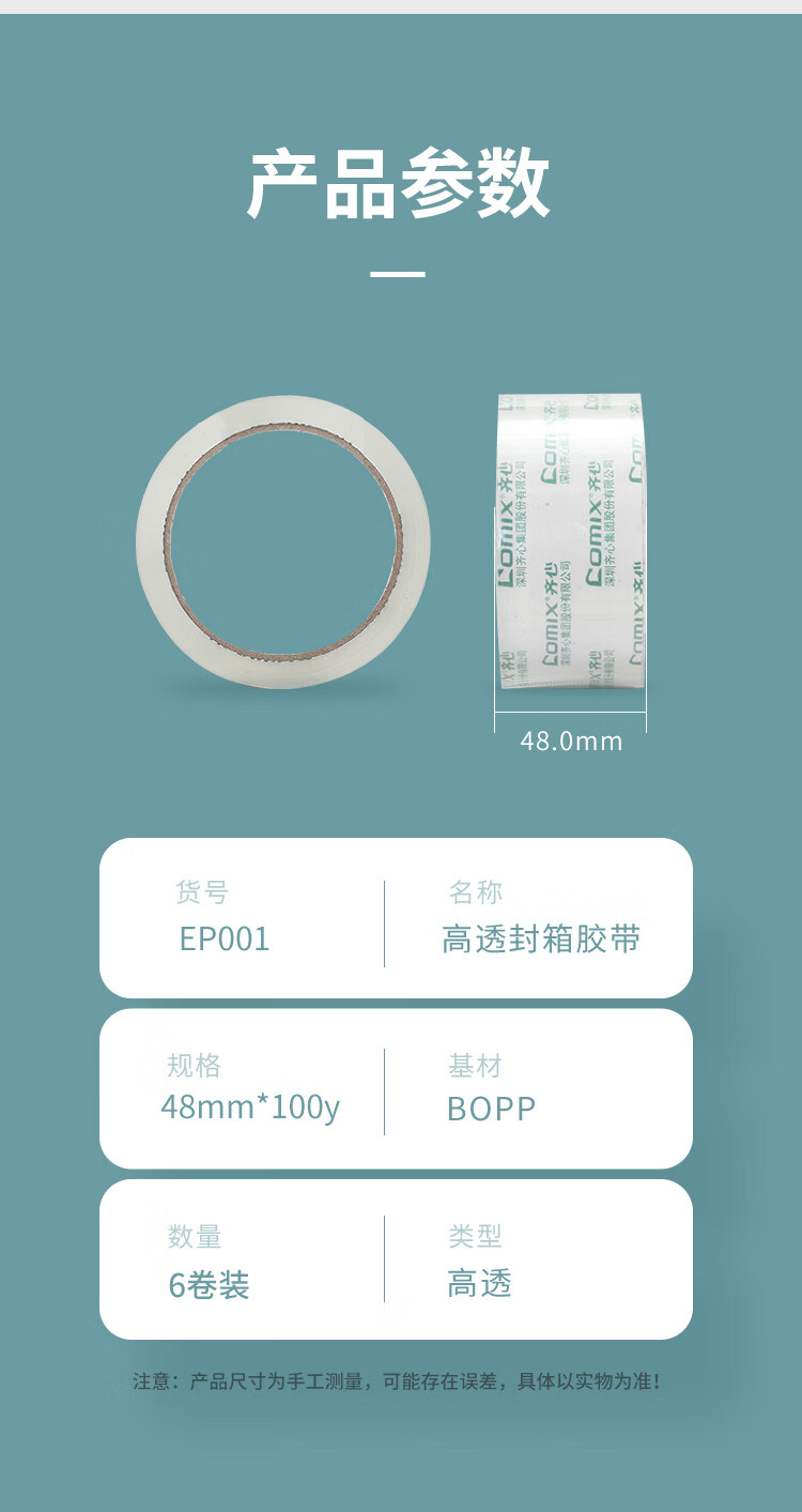齐心(COMIX)透明胶带/宽胶带/封箱胶带 快递打包胶带透明 6卷 宽48mm*100y*45um长91.4米/卷 EP001