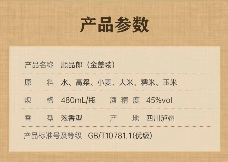 郎酒顺品郎金盖 浓香型白酒 45度 480mL*6瓶 六瓶装 (非原箱)