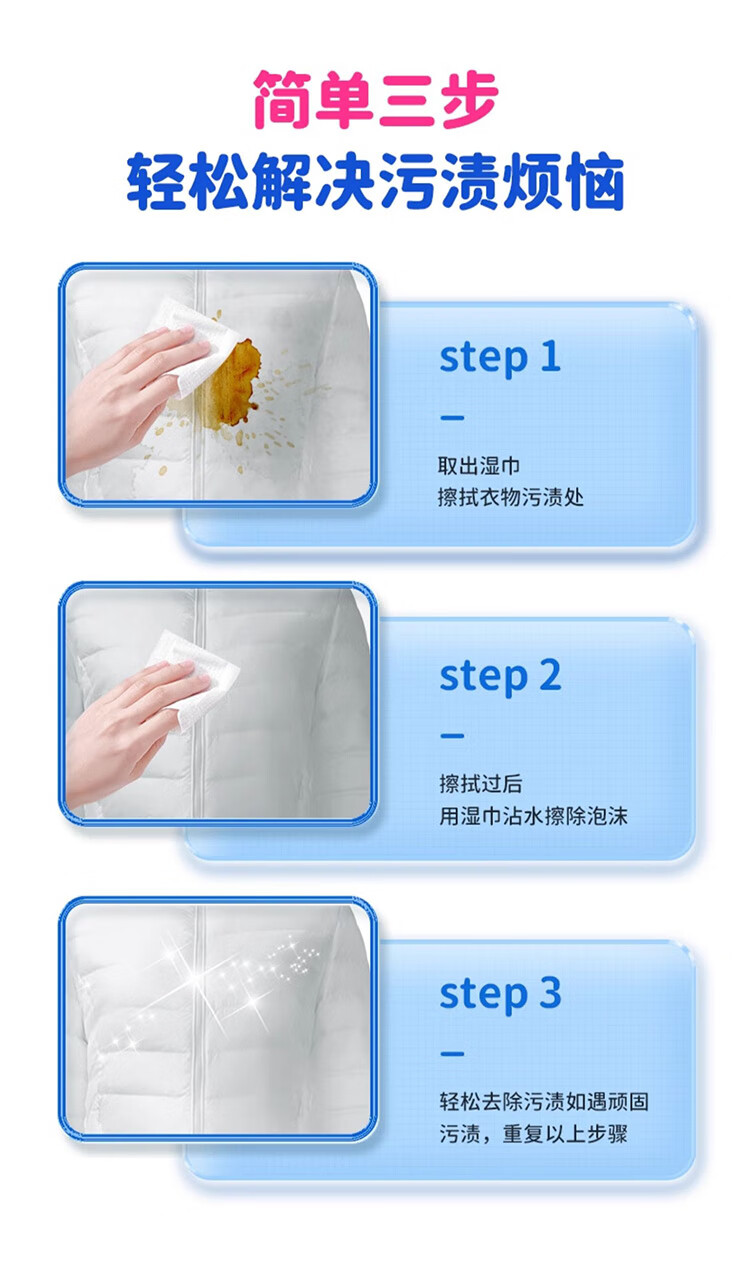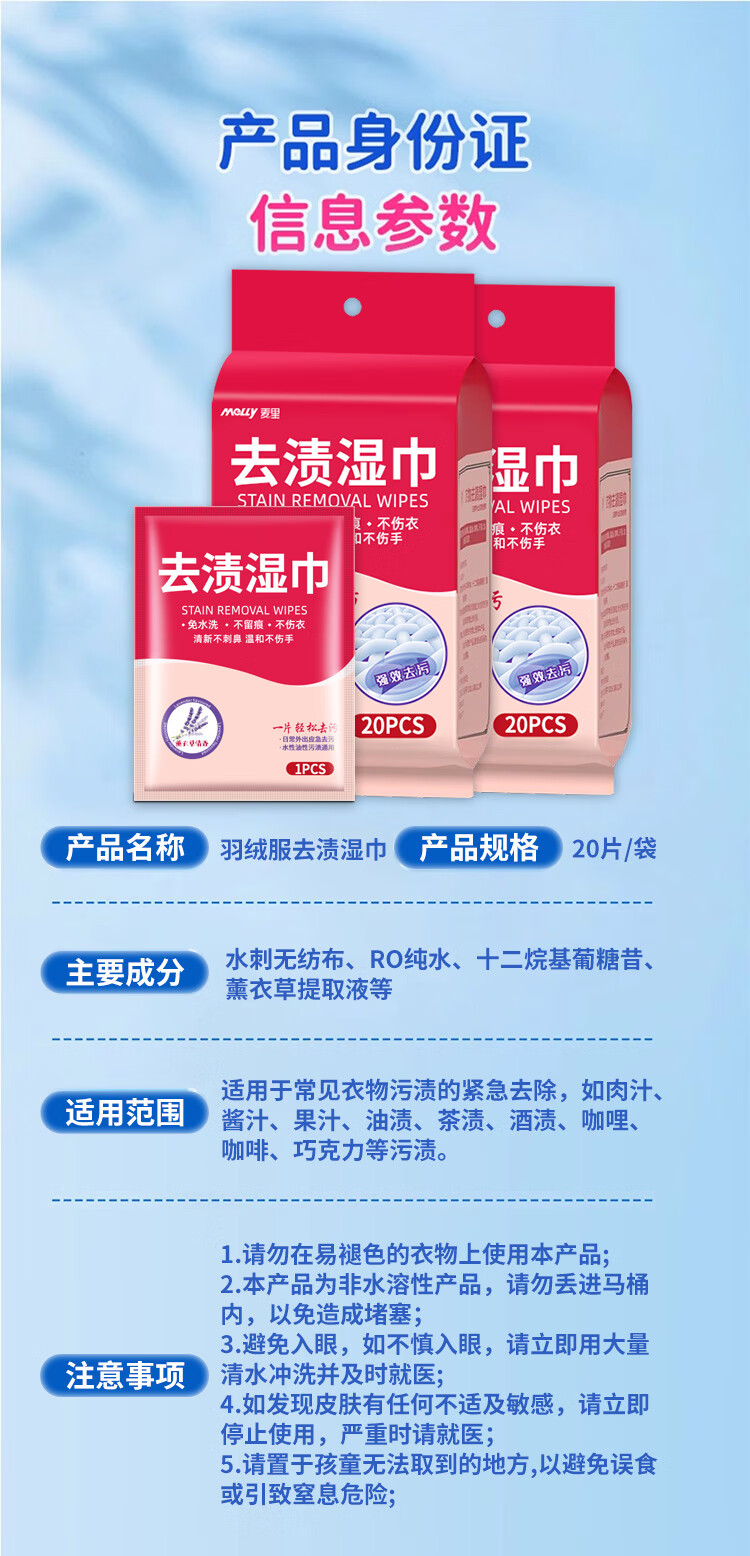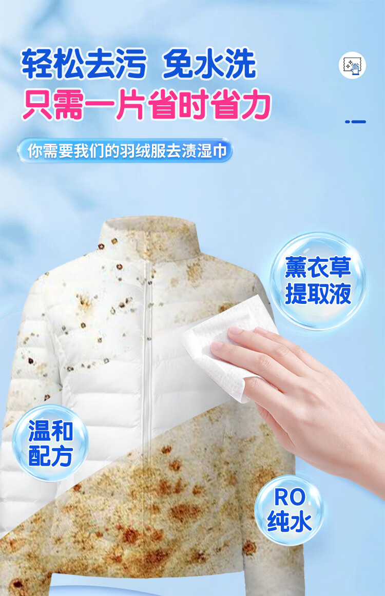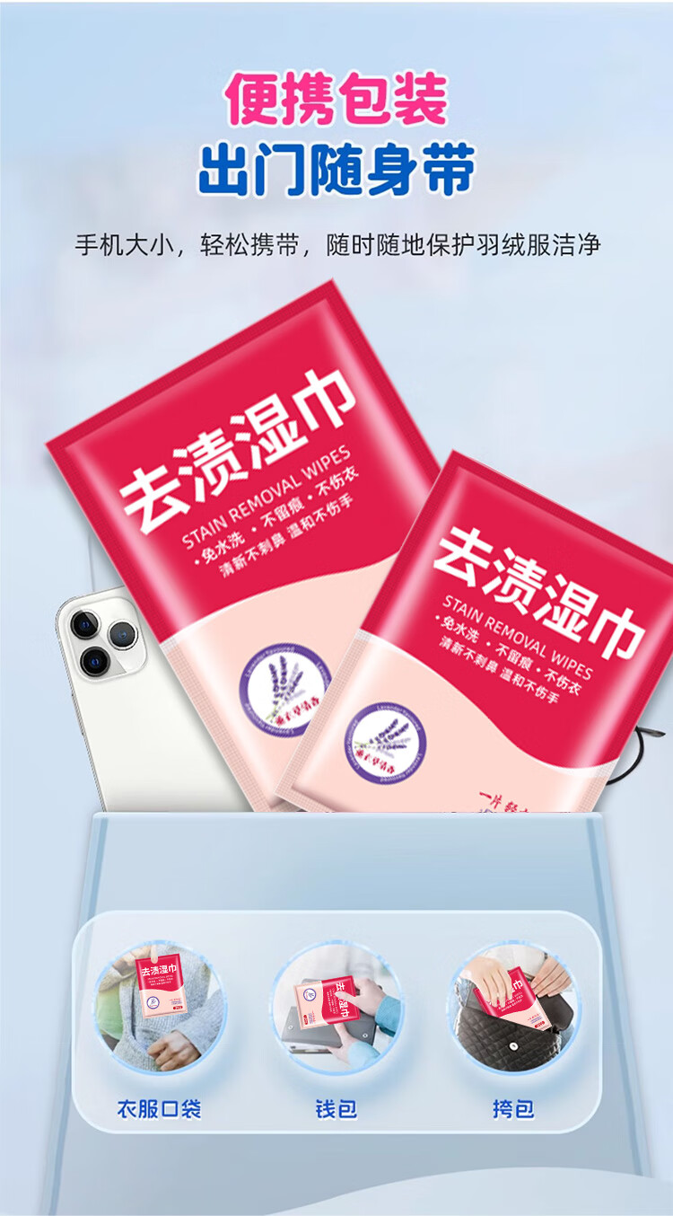 小林康夫衣物去渍湿巾20片*5包 羽绒服清洁湿巾去油渍衣服神器免洗干洗剂