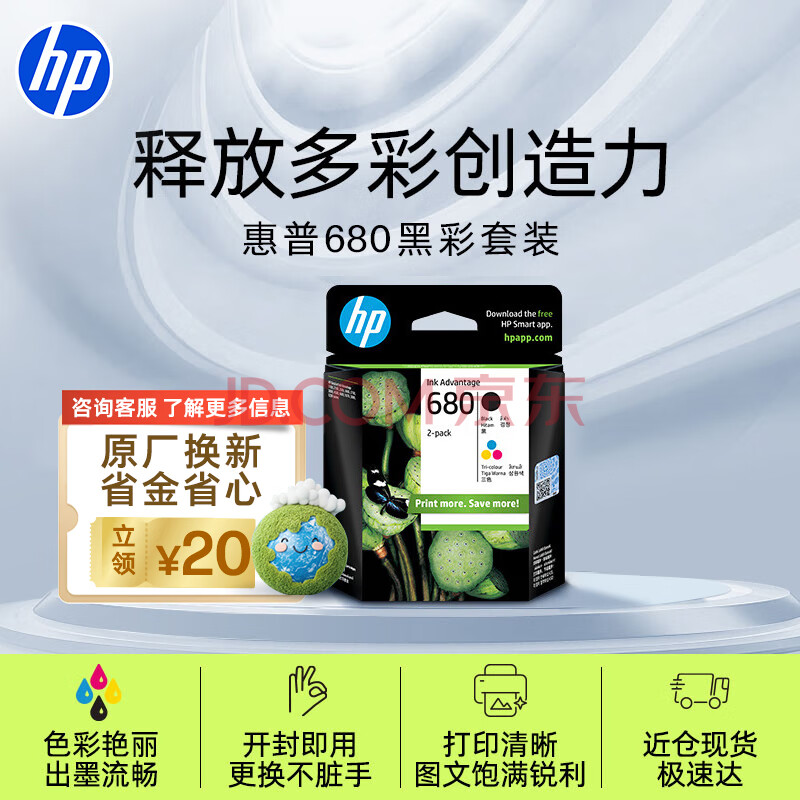 惠普(HP)680原装黑彩套装墨盒 适用hp 2138/2677/3636/3638/3838/3776/3777/3778/4678/5078/5088打印机