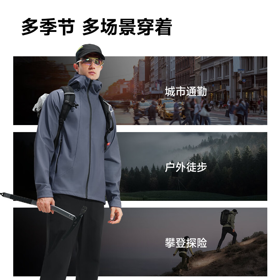 素湃防风防暴雨多功能软壳衣户外秋季男女连帽夹克外套 深灰色 L