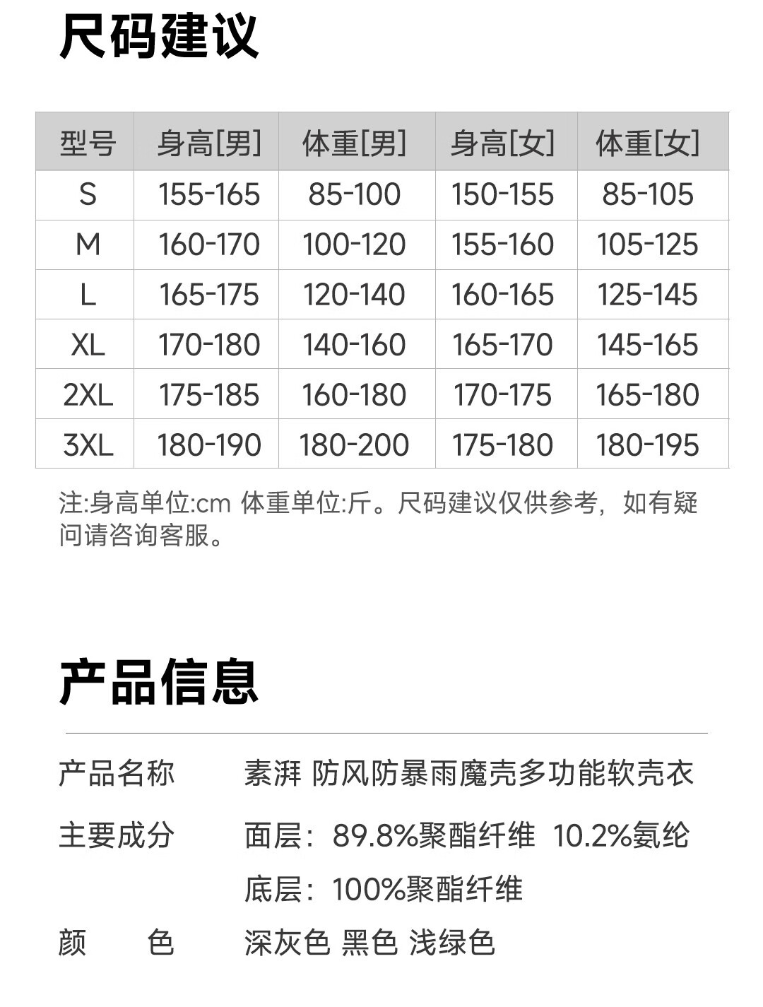 素湃防风防暴雨多功能软壳衣户外秋季男女连帽夹克外套