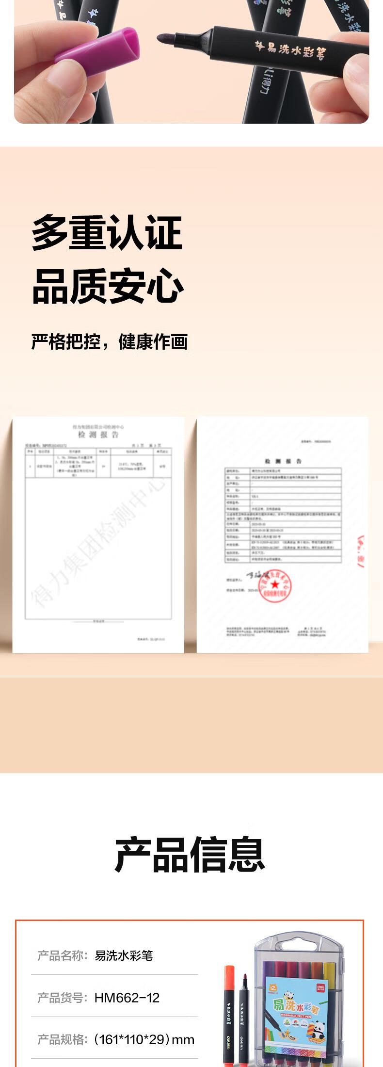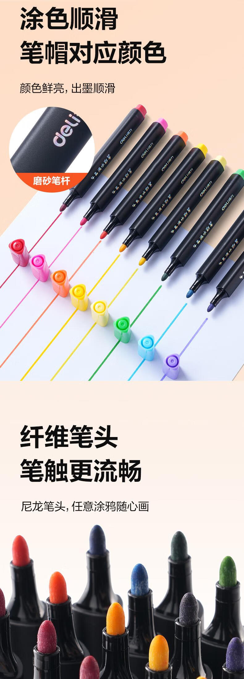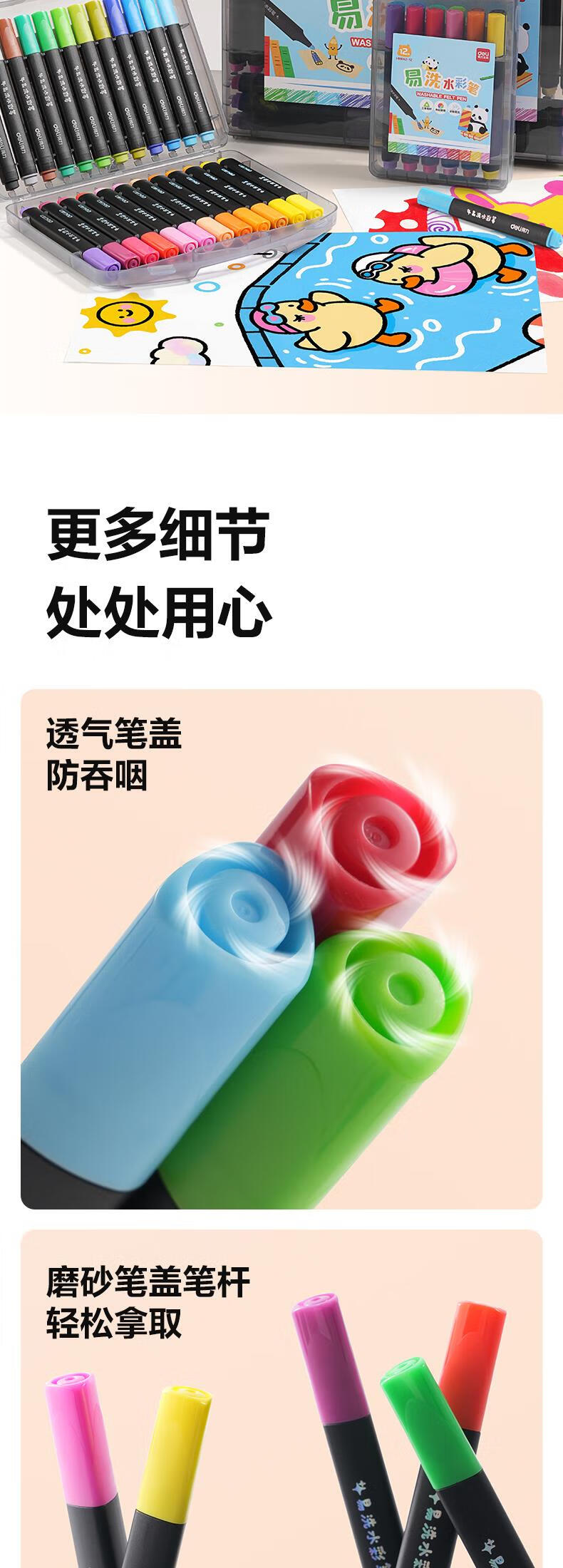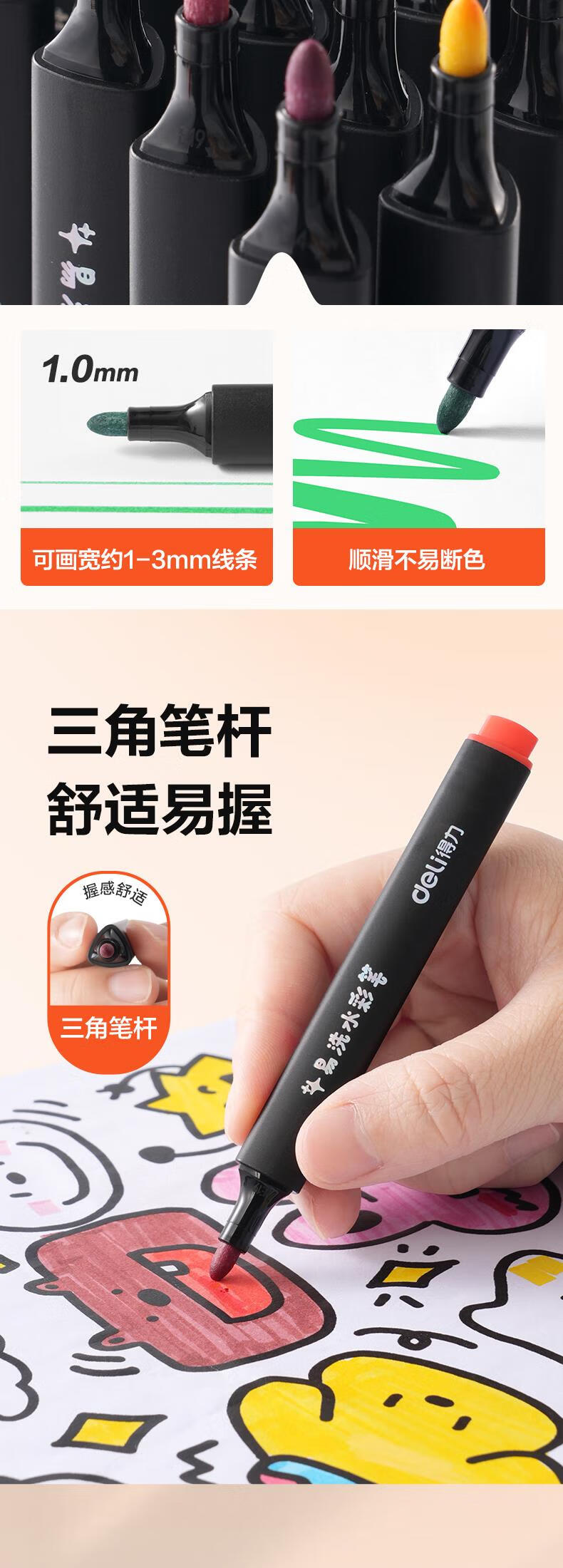 得力(deli)24色小黑盒易洗易清洗水彩笔熊猫粗三角杆学生儿童画画涂色美术绘画礼物HM662-24热门商品