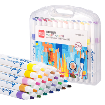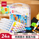 得力(deli)24色儿童学生水性丙烯马克笔PP盒装水彩笔生日礼物防水手绘咕卡荧光记号笔涂鸦热门商品