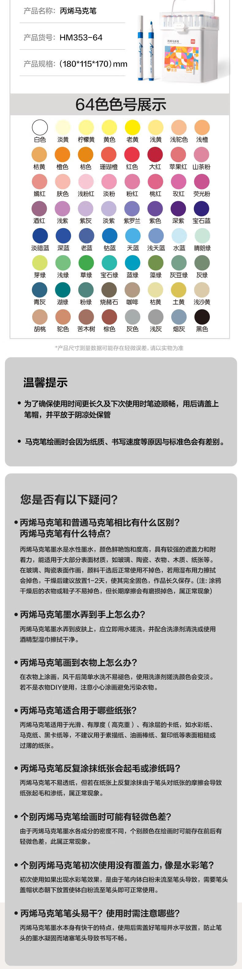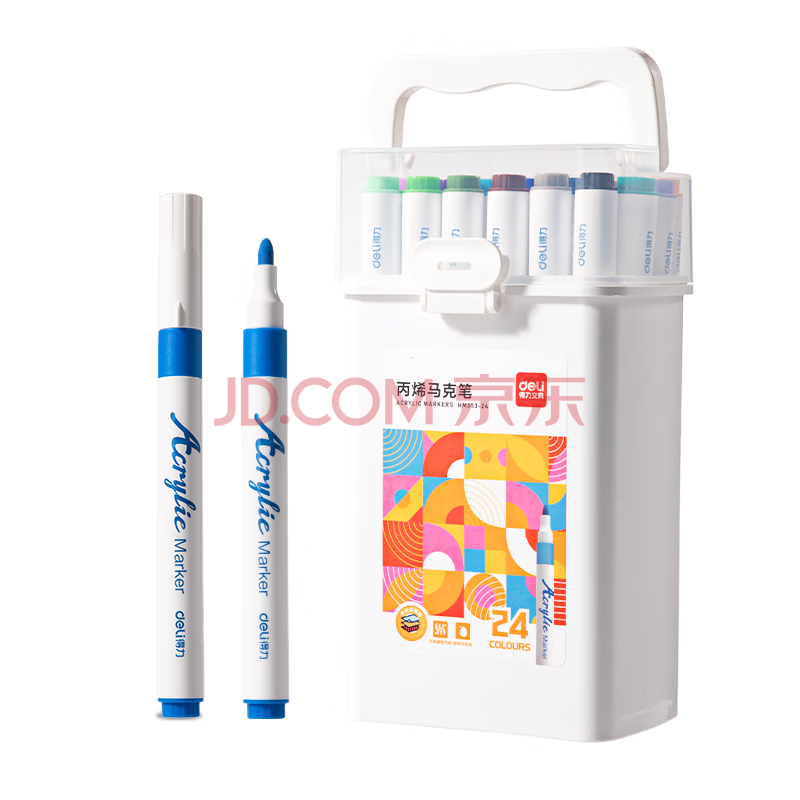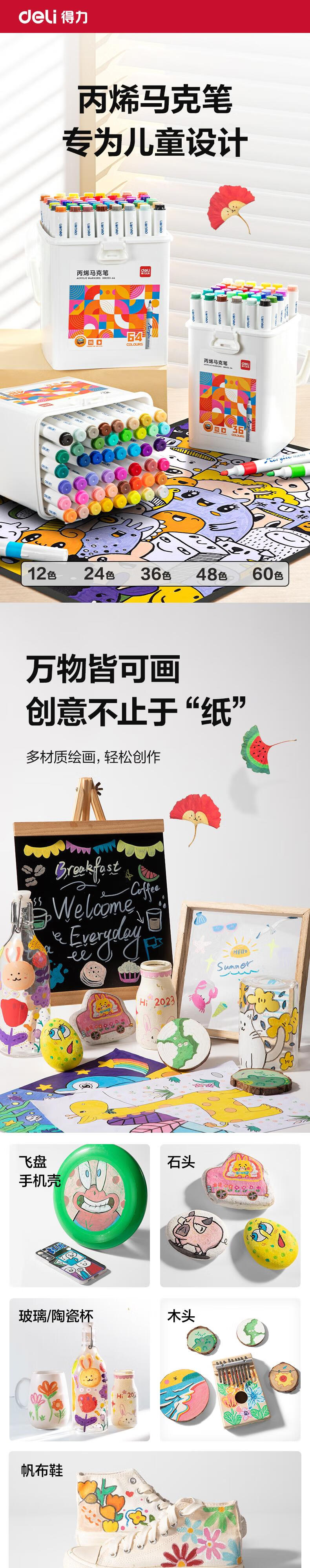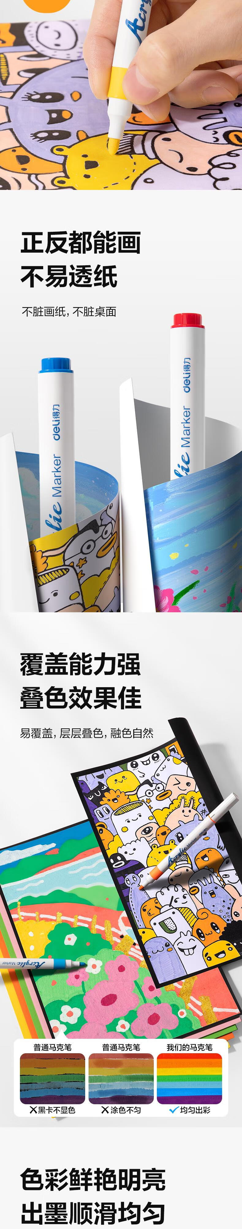 得力(deli)24色儿童学生圆杆丙烯马克笔三角杆水彩笔生日礼物防水手绘荧光记号笔涂鸦HM353-24热门商品