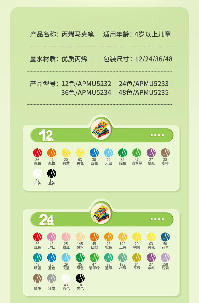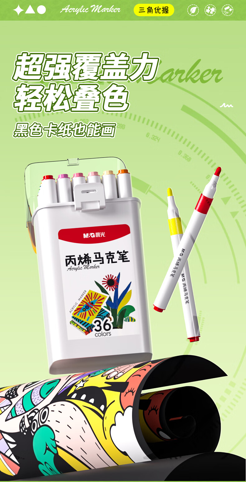 晨光(M&G)文具36色圆杆丙烯马克笔安全防水速干大容量