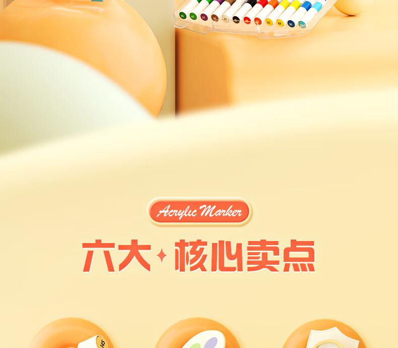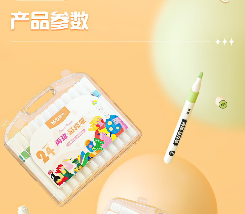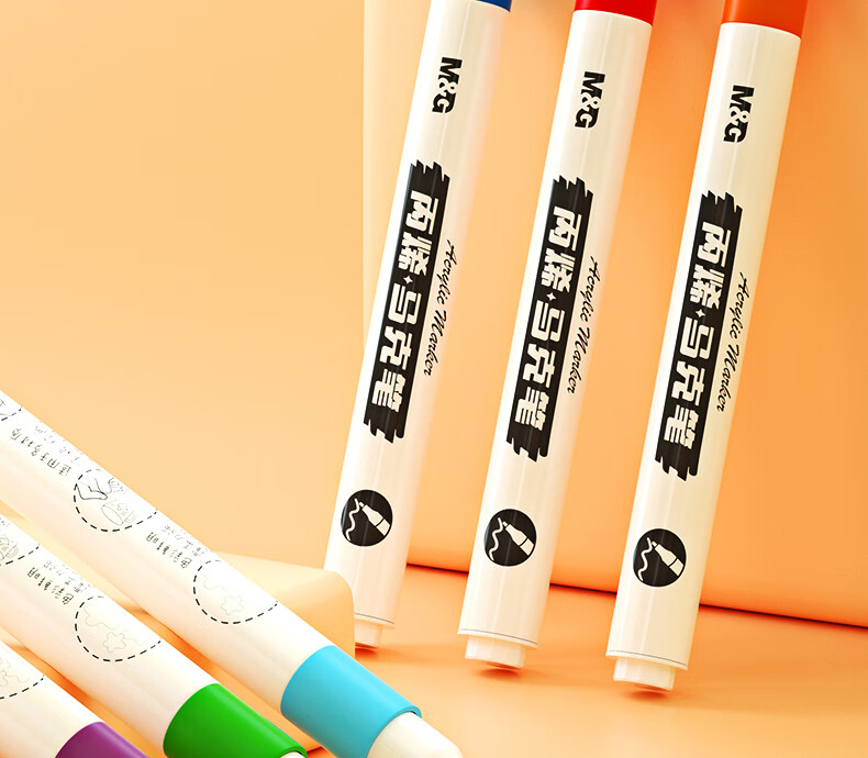 晨光(M&G)文具24色圆杆丙烯马克笔安全防水速干大容量记号笔荧光笔涂鸦学生儿童画笔APMT3308生日礼物水彩笔