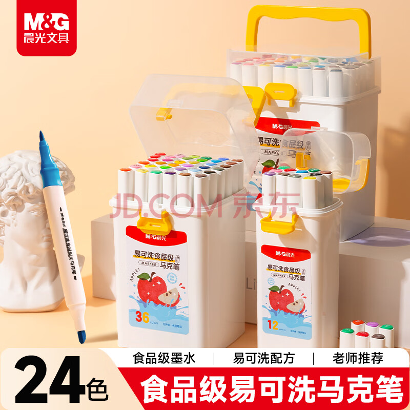 晨光(M&G)文具24色食品级易可洗马克笔安全儿童三角杆双头水性彩笔荧光笔学生绘画涂鸦生日礼物APMT4232美育