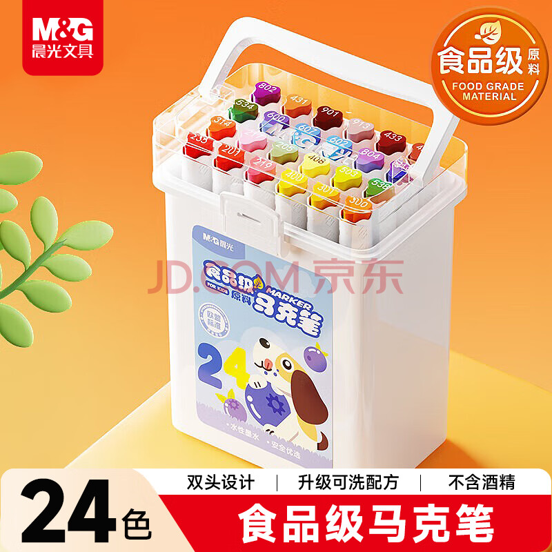 晨光(M&G)文具24色食品级水性马克笔儿童粗细双头三角杆可水洗水彩笔学生美术画笔荧光笔美育APMT80C6