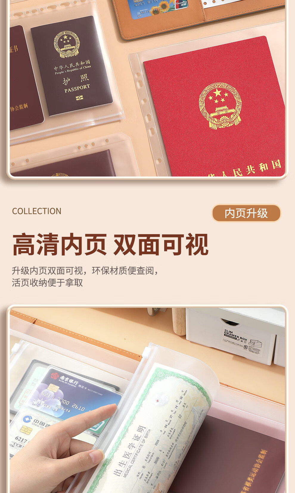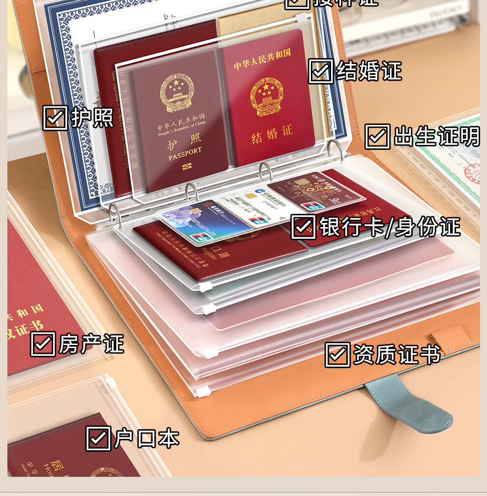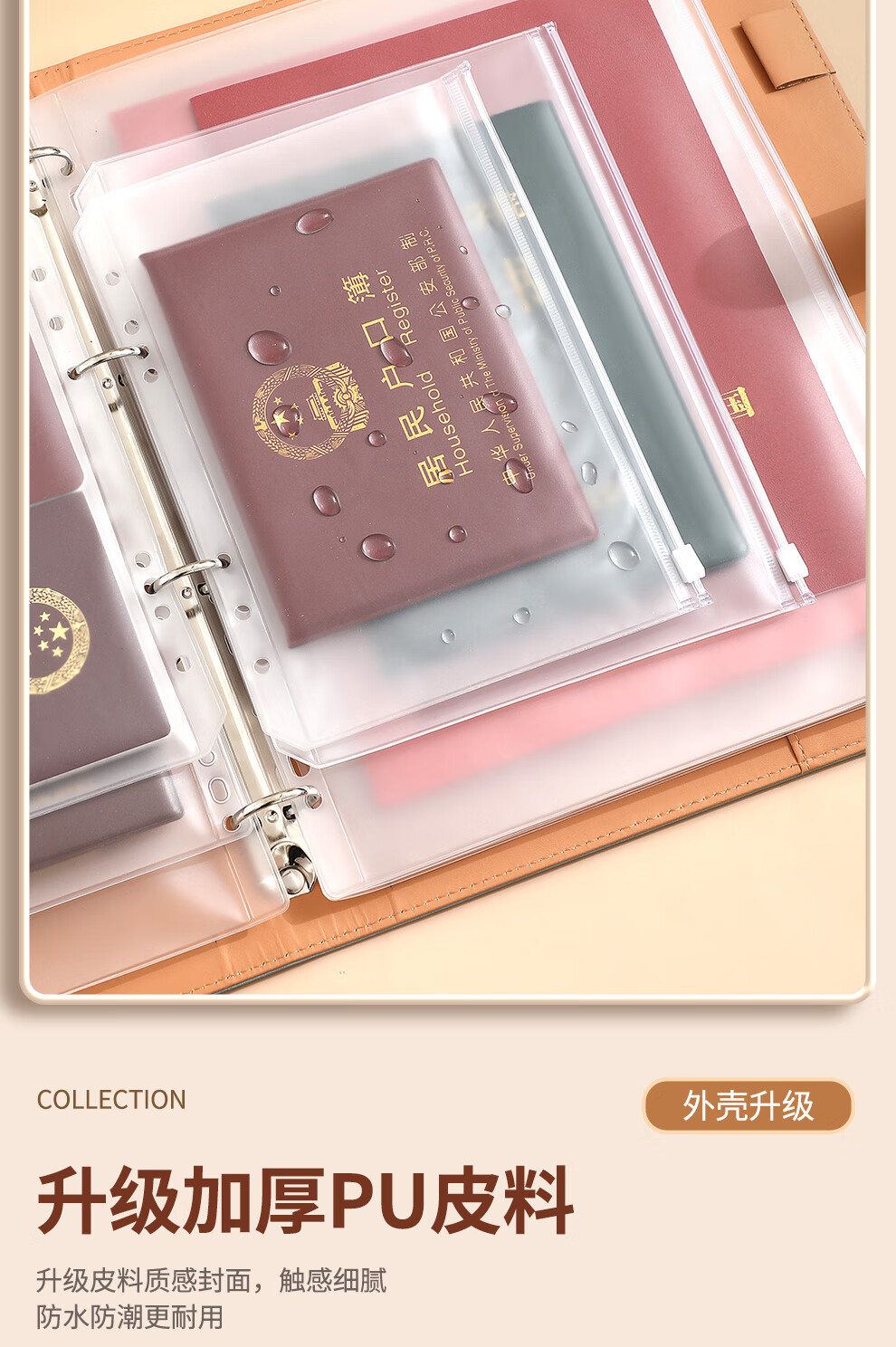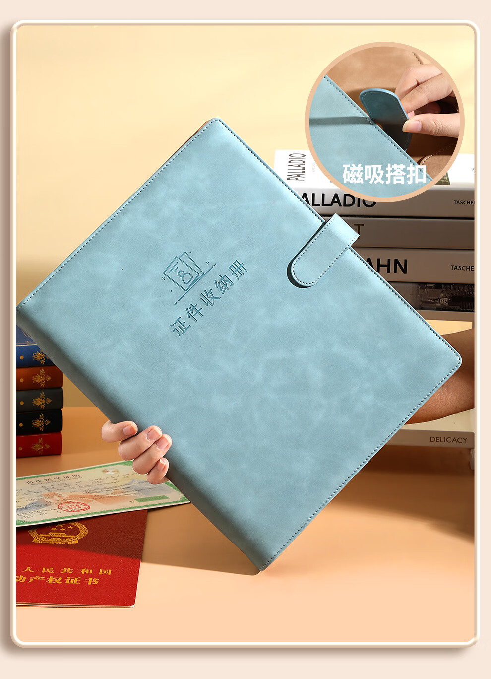 嘉然恒 家庭证件收纳册A4活页多功能大容量防水收纳包出生证明户口本房本疫苗本保护套资料文件夹档案册 蓝灰