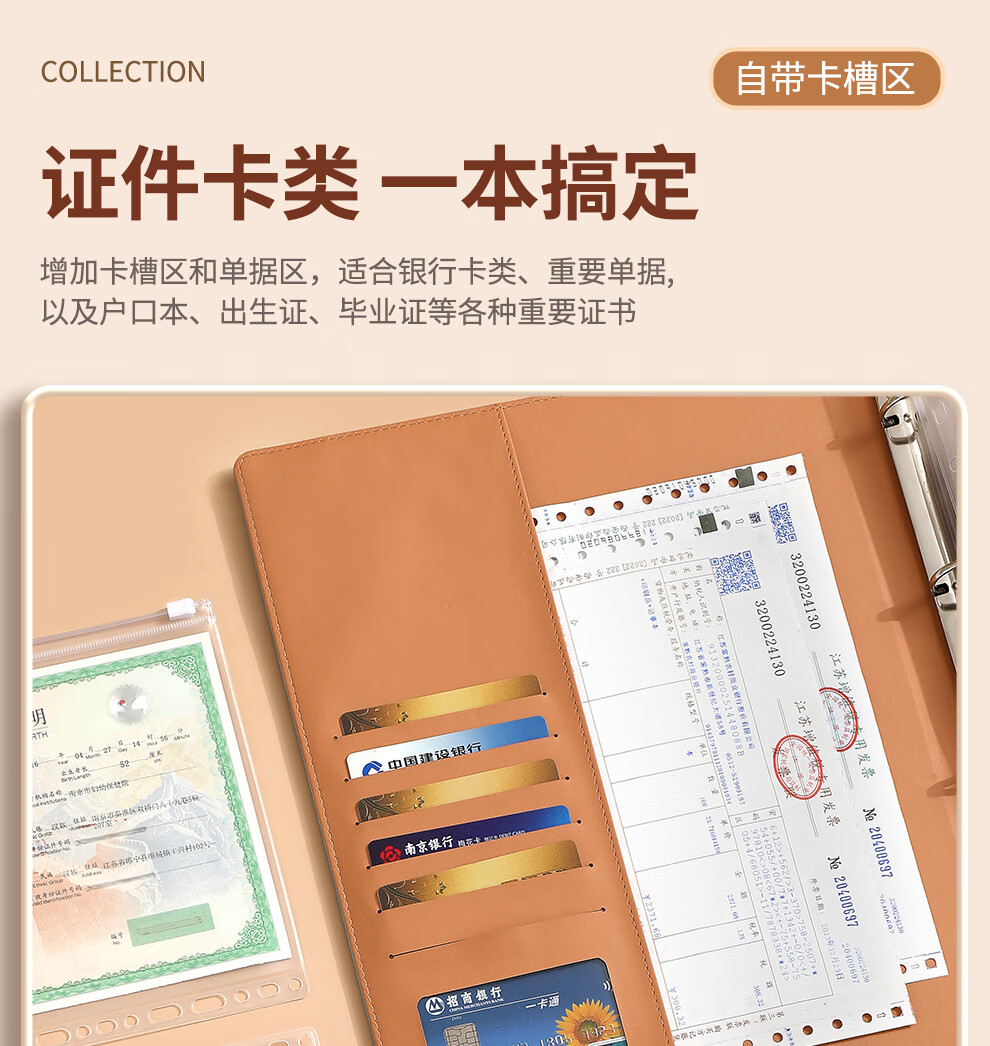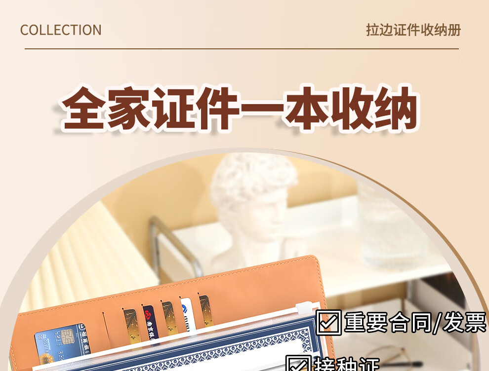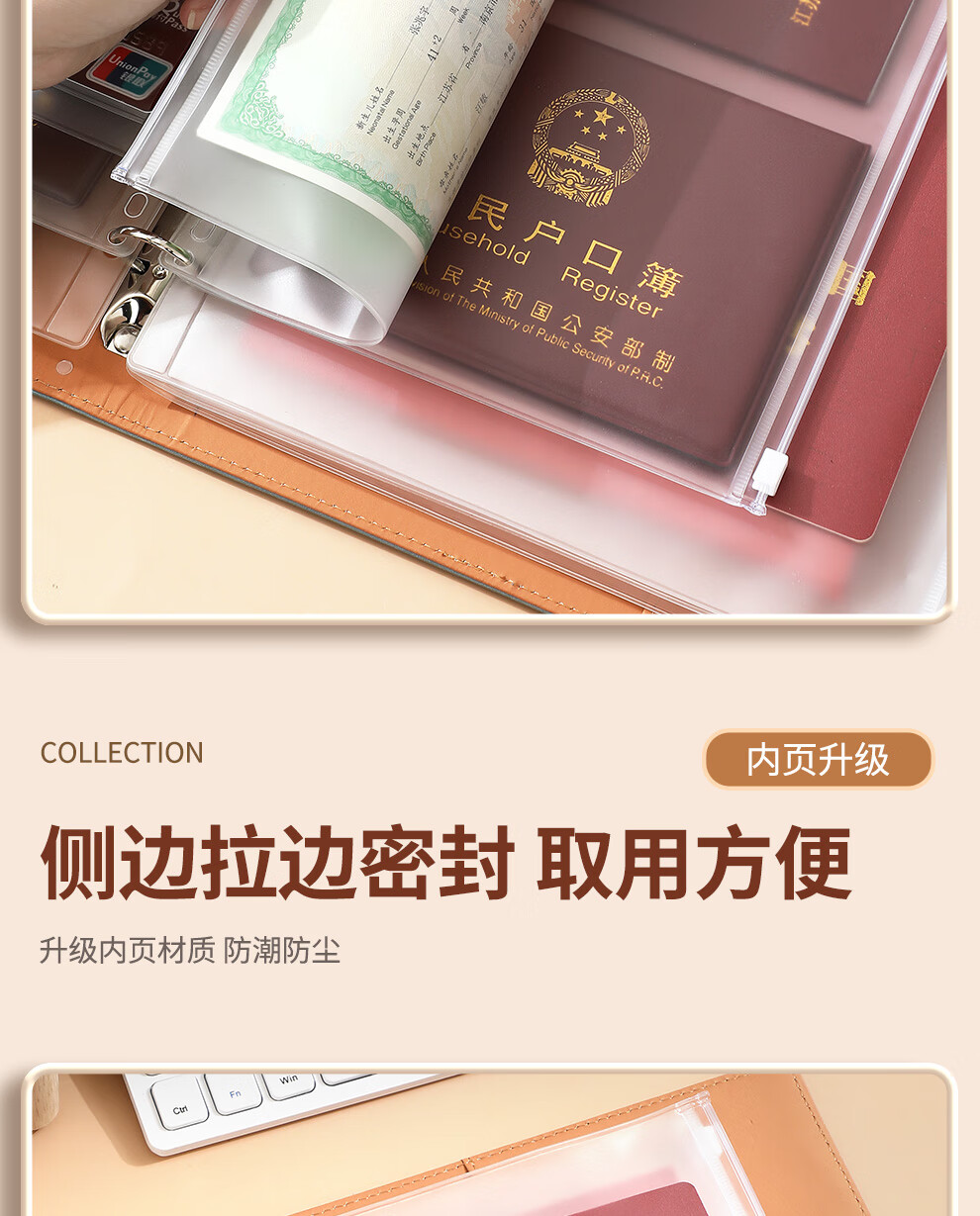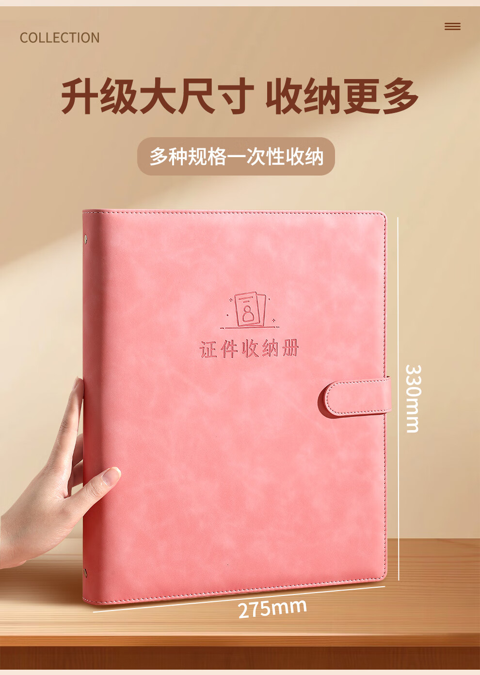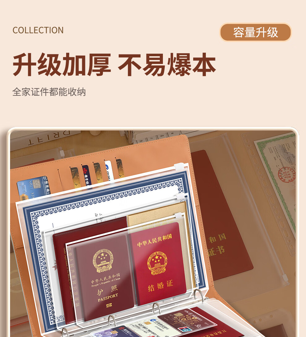 嘉然恒 家庭证件收纳册A4活页多功能大容量防水收纳包出生证明户口本房本疫苗本保护套资料文件夹档案册 蓝灰