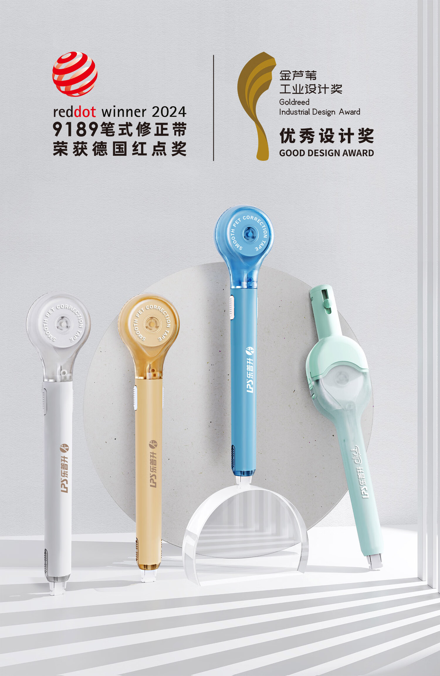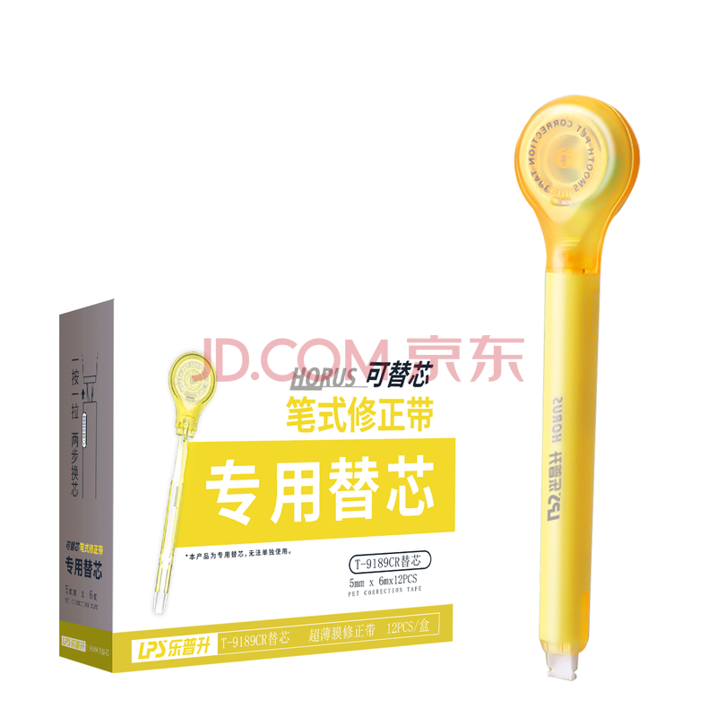 乐普升(LPS)修正带笔式涂改带可换替芯创意笔形改正带便携高颜值学生文具共9189黄1+12替芯