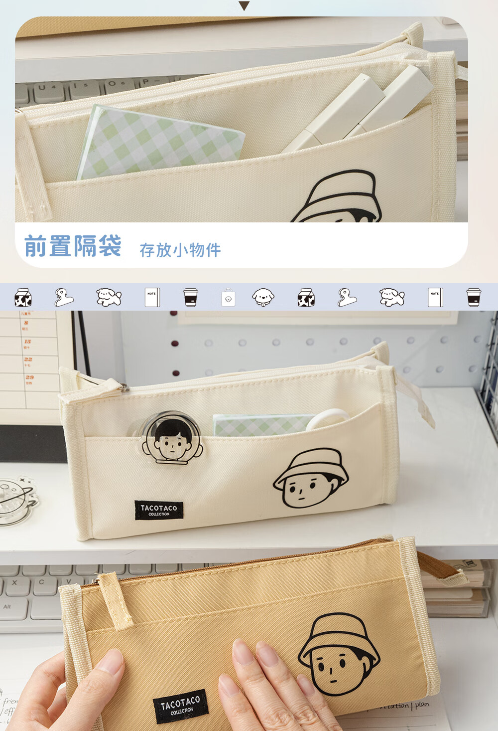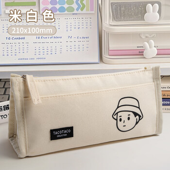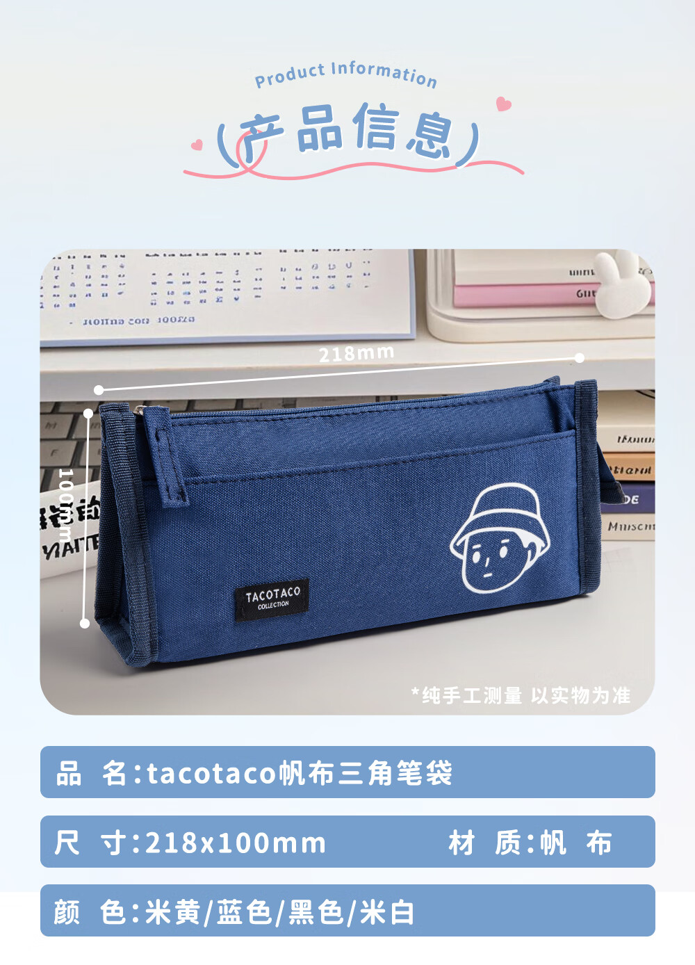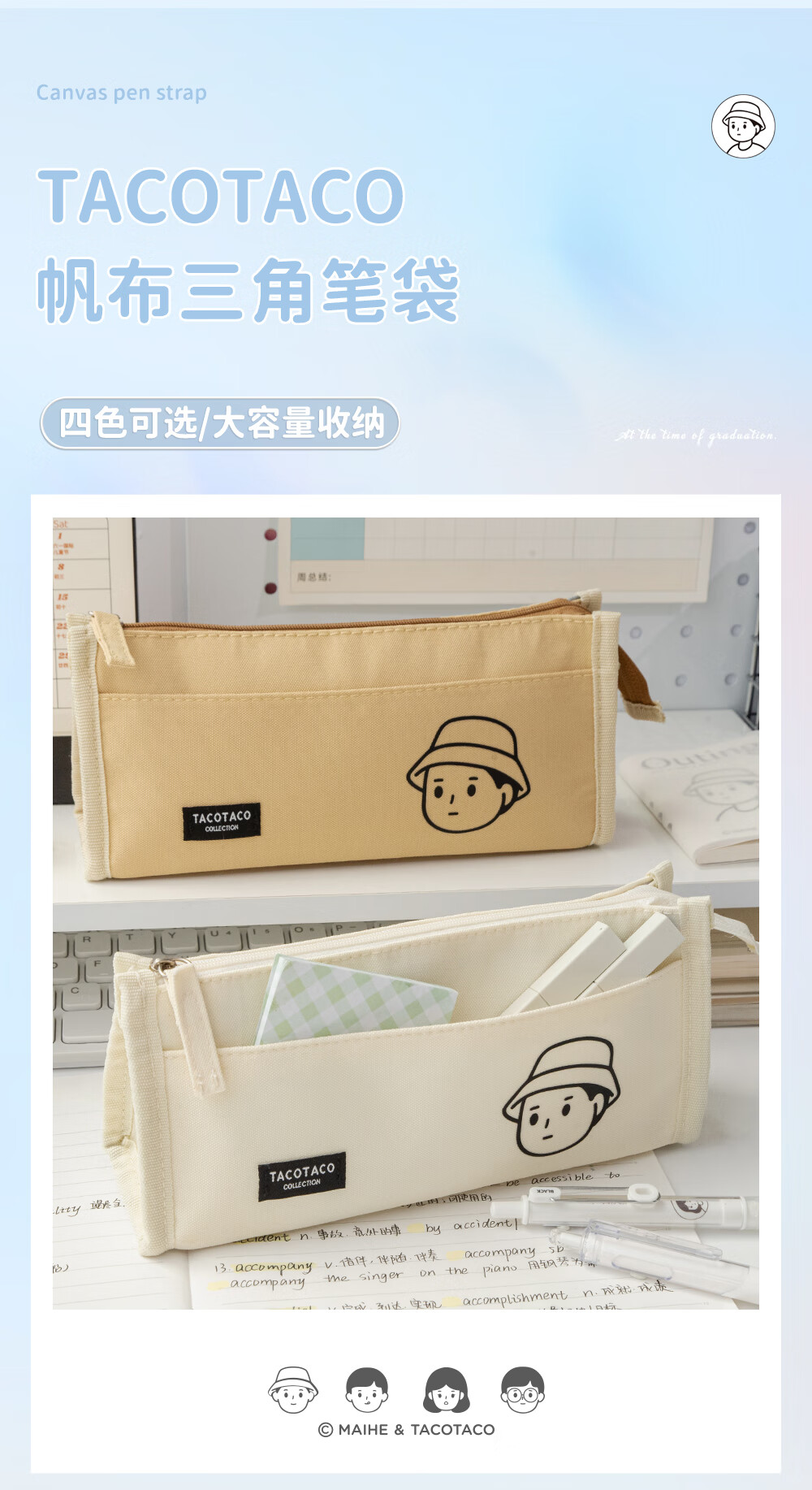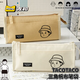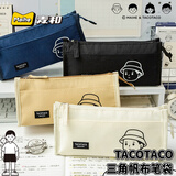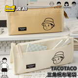 麦和TacoTaco三角帆布笔袋国誉Noritake平替文具袋文具盒ins风笔袋化妆包多用大容量铅笔袋-米白色