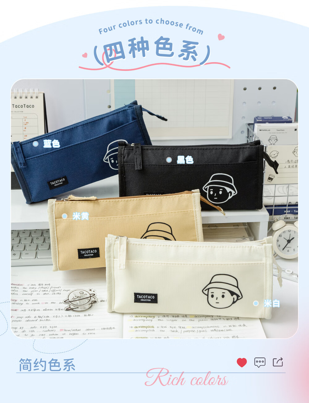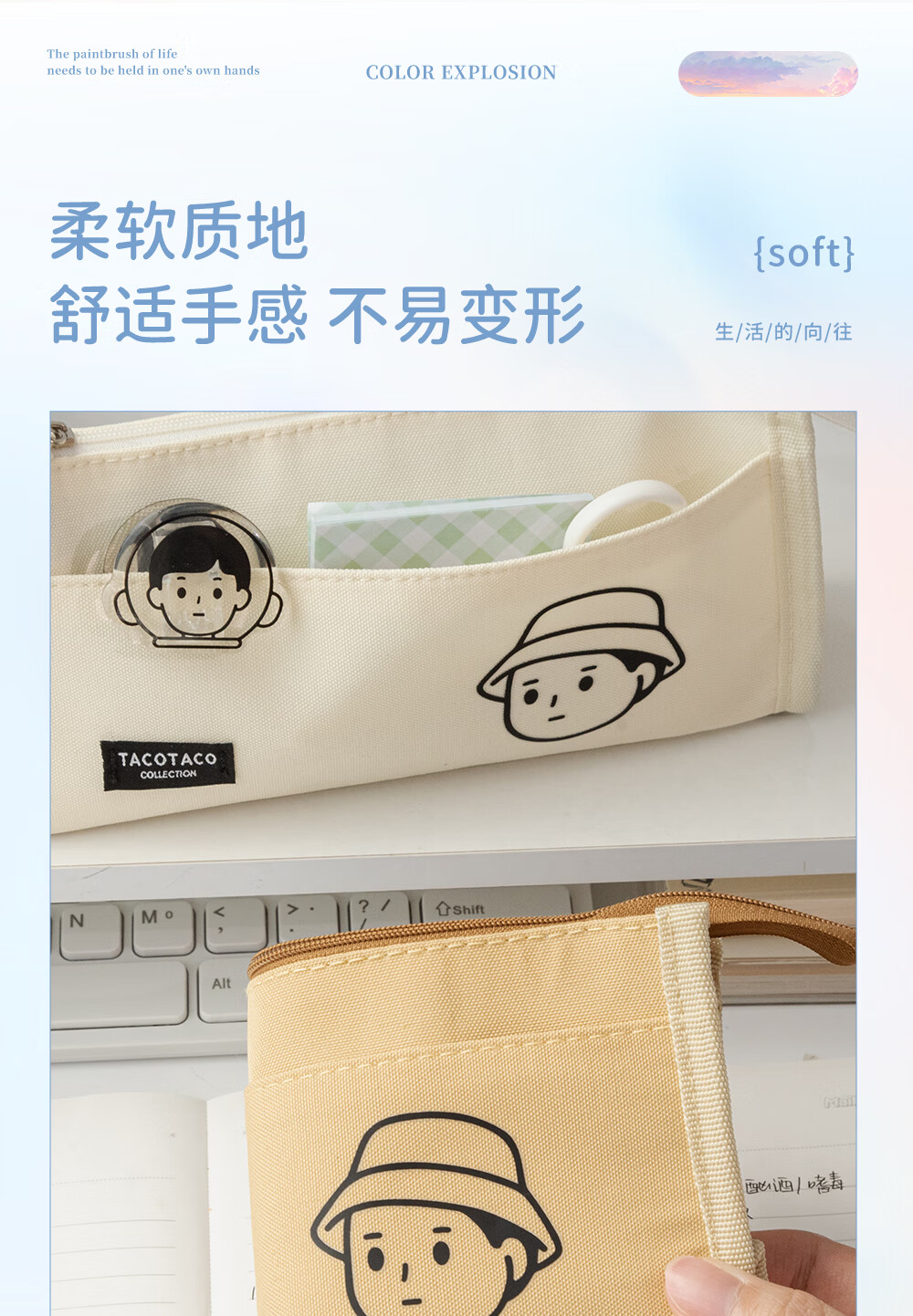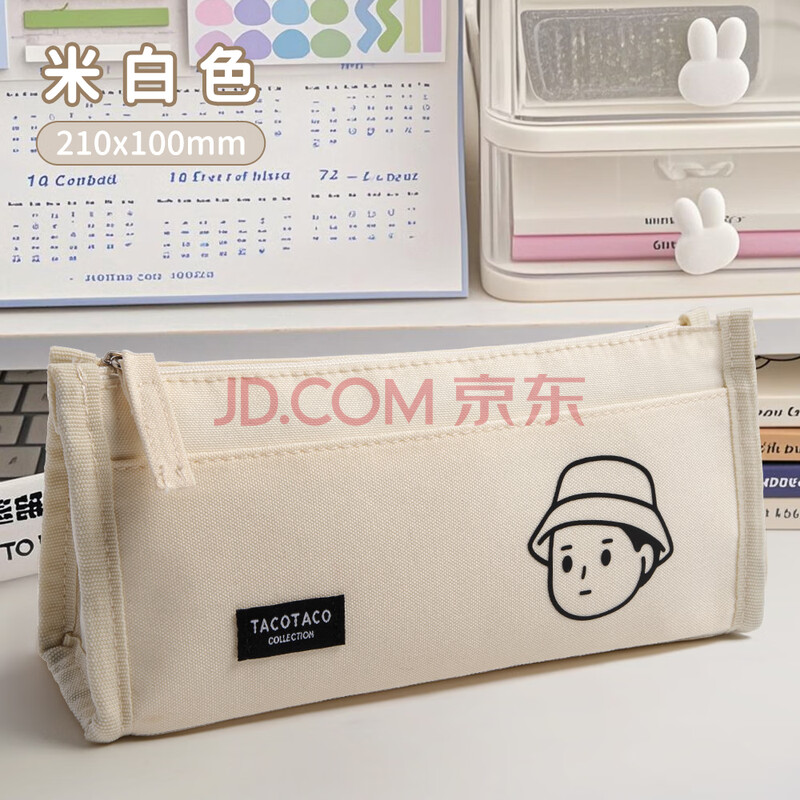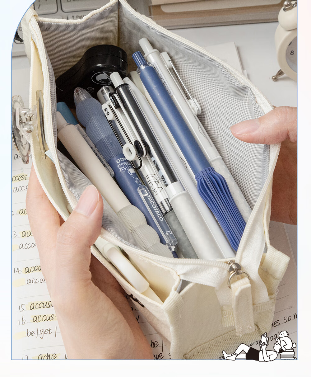 麦和TacoTaco三角帆布笔袋国誉Noritake平替文具袋文具盒ins风笔袋化妆包多用大容量铅笔袋-米白色