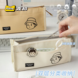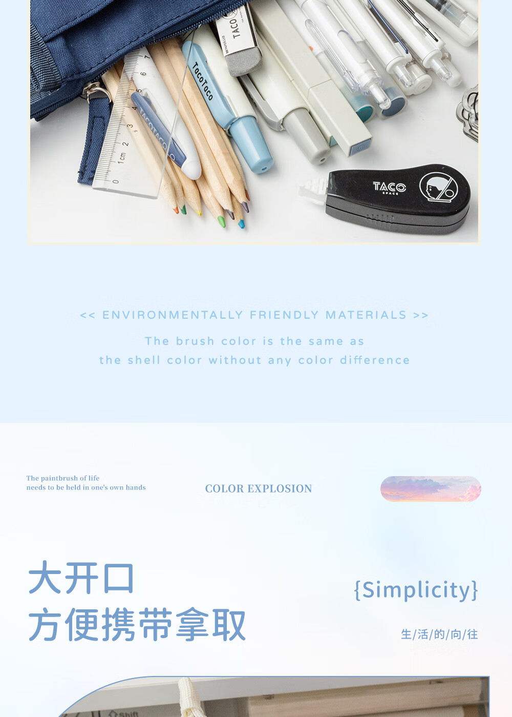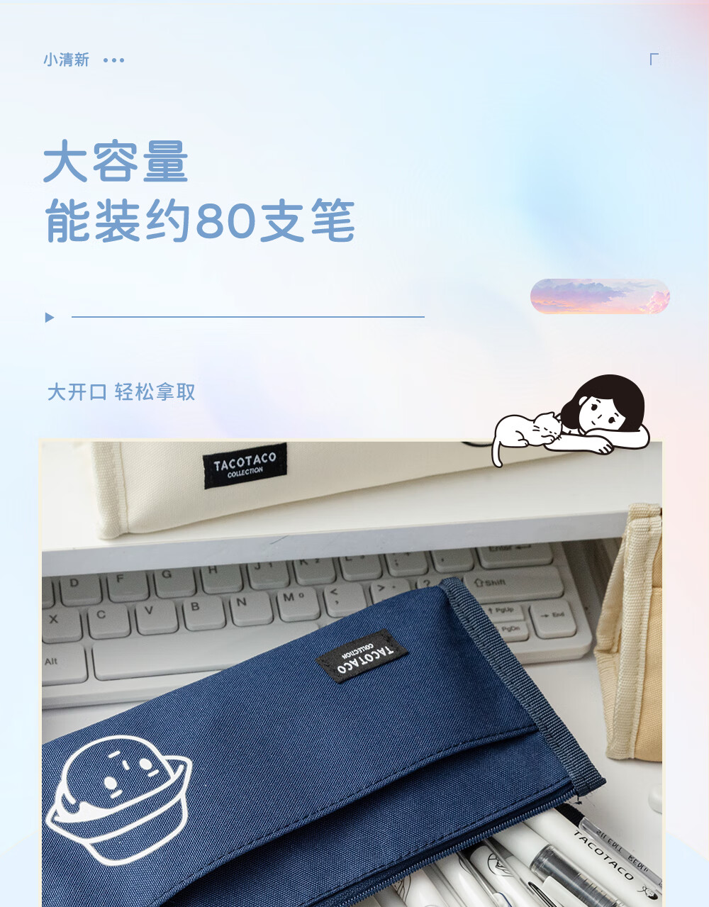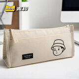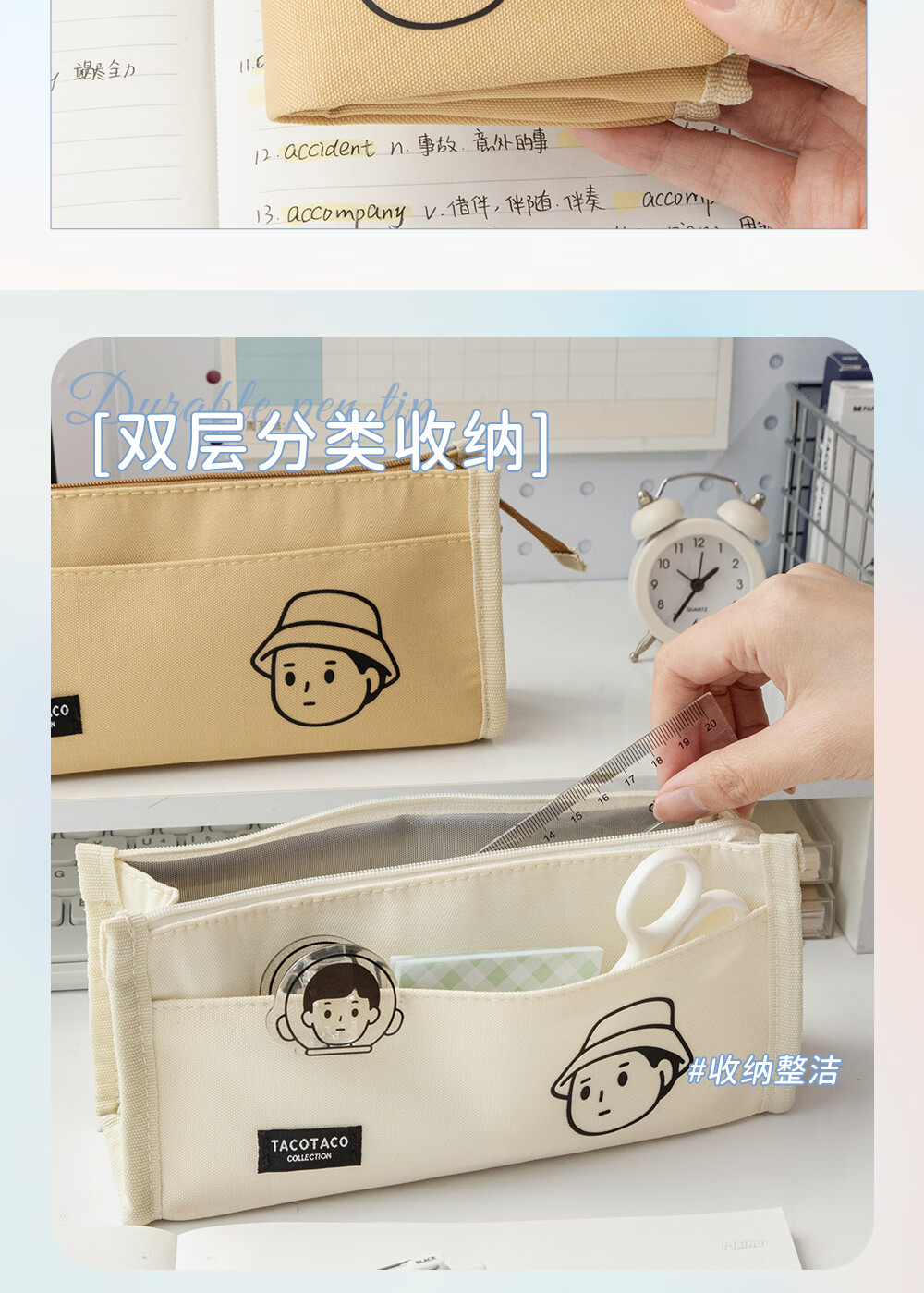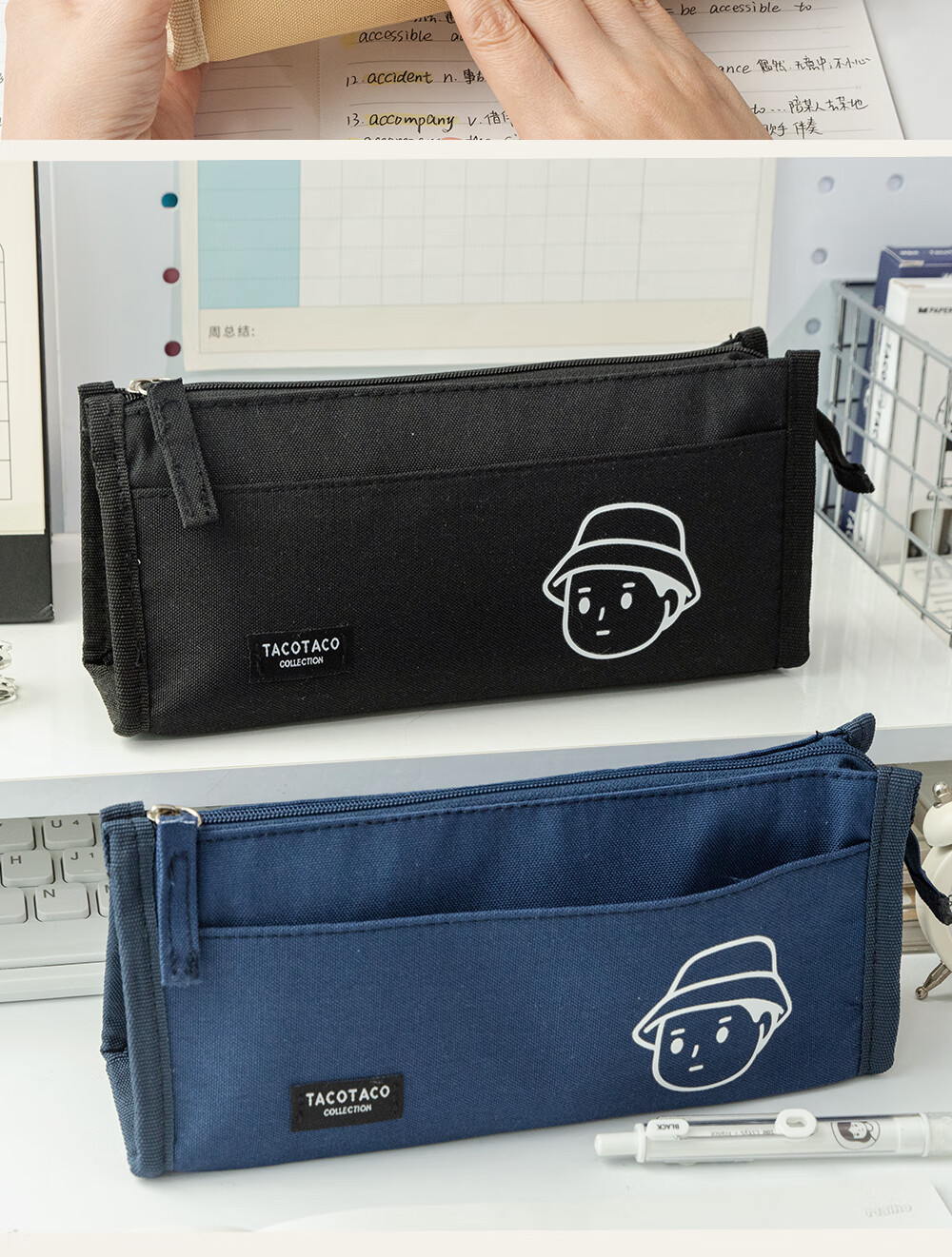 麦和TacoTaco三角帆布笔袋国誉Noritake平替文具袋文具盒ins风笔袋化妆包多用大容量铅笔袋-米白色
