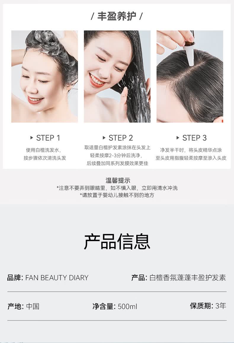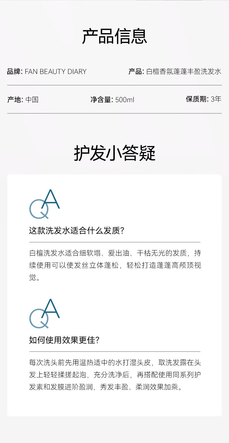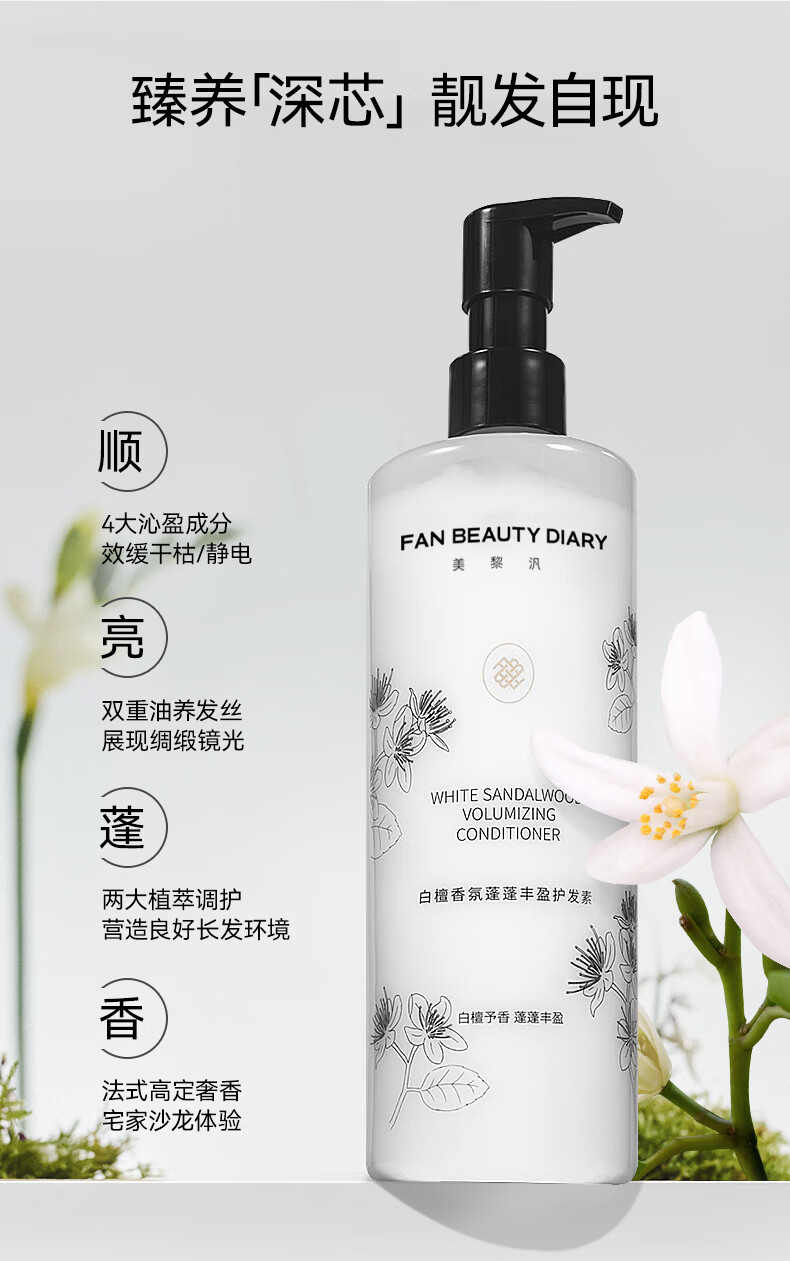 FAN BEAUTY DIARY白檀香氛洗护套装 洗发水500ml+护发素500ml 丰盈蓬松光泽