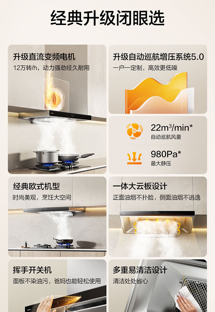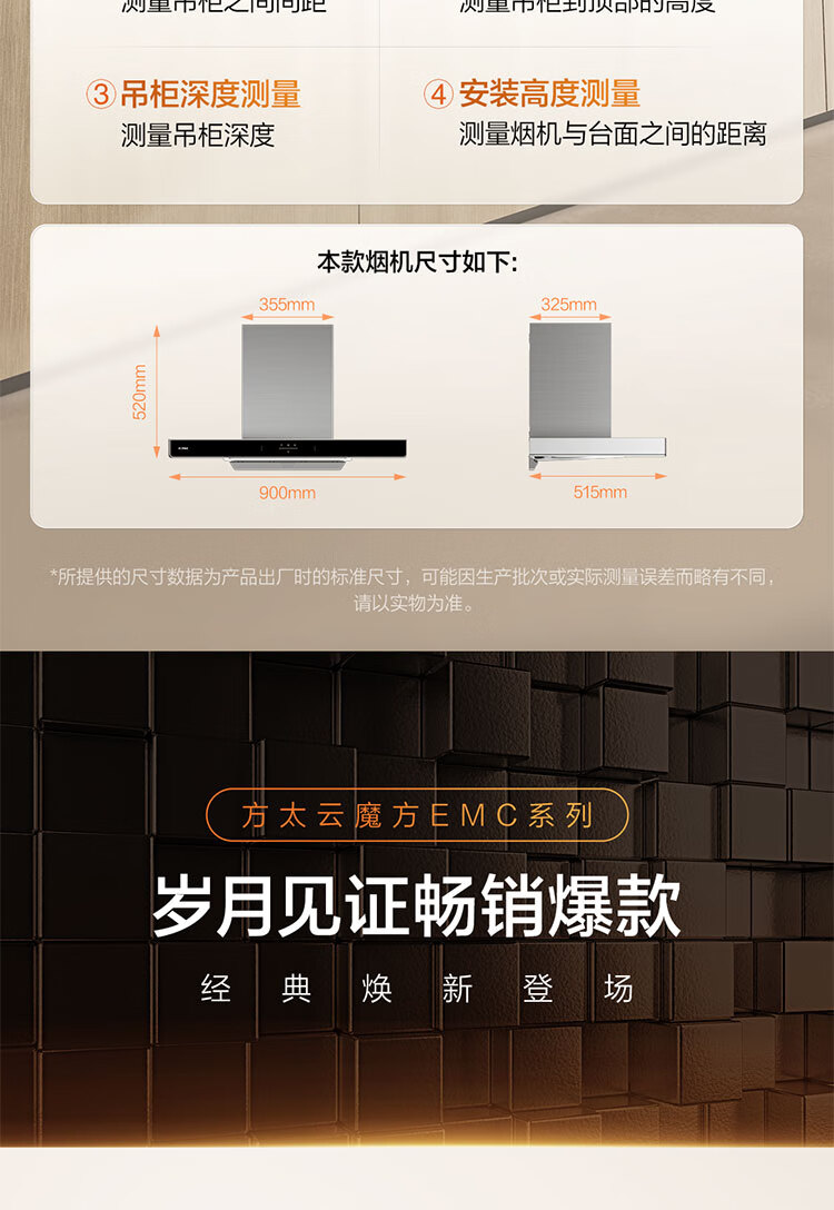 方太(FOTILE)EMC5T欧式顶吸云魔方升级 22风量 自动巡