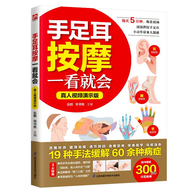 7种足部按摩手法,4种耳部按摩手法,搭配组合运用,缓解60种常见病症。"