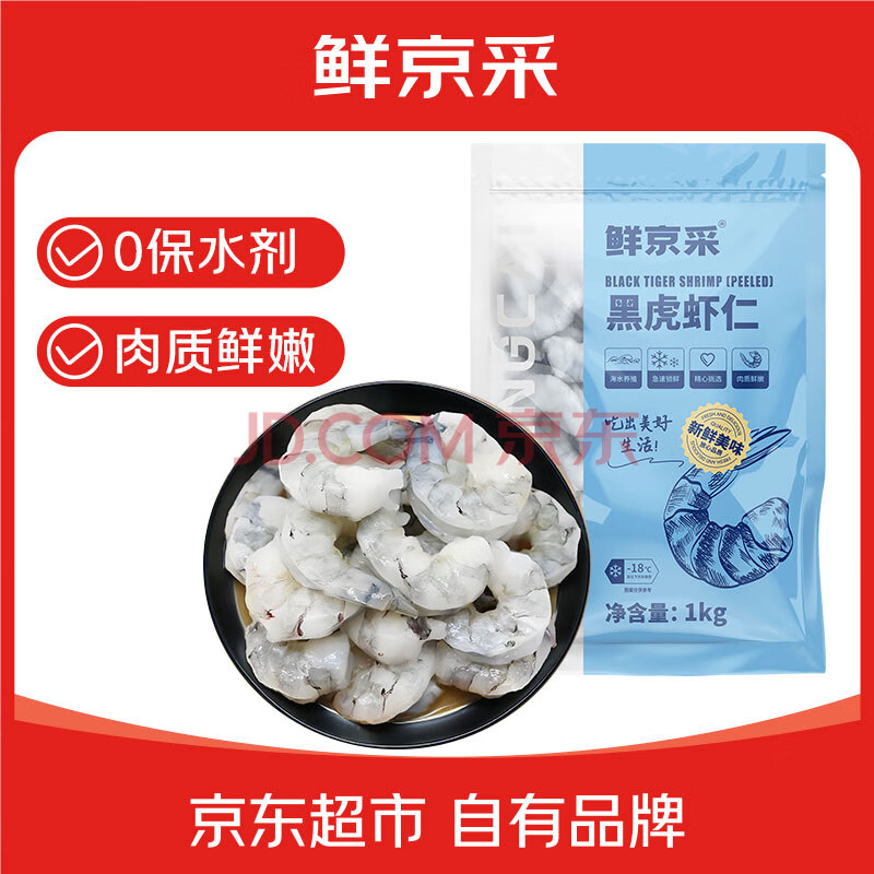 鲜京采【0保水剂】大号黑虎虾仁1kg 无冰净重68-88只