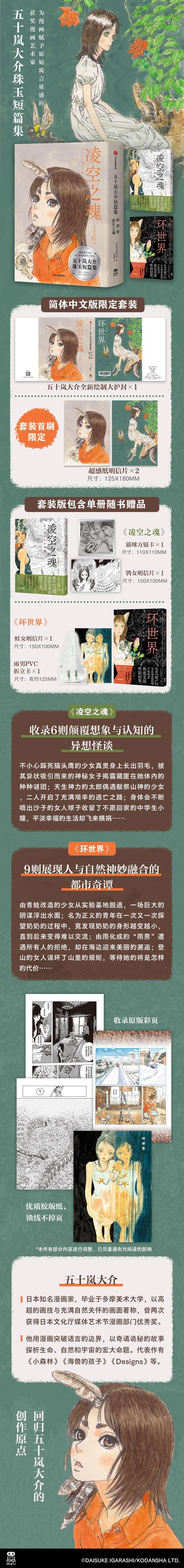 《凌空之魂》收录6则颠覆想象与认知的异想怪谈。不小心踩死猫头鹰的少女真贵身上长出羽毛,被其异状吸引而来的神秘女子揭露藏匿在她体内的种种谜团;天生神力的太郎偶遇献祭山神的少女,二人开启了充满艰辛的逃亡之路;身体会不断喷出沙子的女人球子收留了不愿回家的中学生小瞳,平淡幸福的生活却飞来横祸…… 《环世界》收录9则展现人与自然神妙融合的都市奇谭。由青蛙改造的少女从实验基地脱逃,一场巨大的阴谋浮出水面;名为正义的青年在一次又一次探望奶奶的过程中,竟发现奶奶的身形越变越小,直到后来变得难以交流;由雨化成的“雨男”遭遇所有人的拒绝,却在海边迎来美丽的邂逅;登山的女人误坏了山里的规矩,等待她的将是怎样的代价……