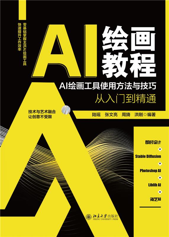本书以AI绘画技术提升现代设计效率为核心,通过对AI绘画现状的分析与讨论,详细地讲解了即时设计、Stable Diffusion、Photoshop AI、Liblib AI、海艺AI等主流AI绘画工具的特色、操作方法与绘画技巧。