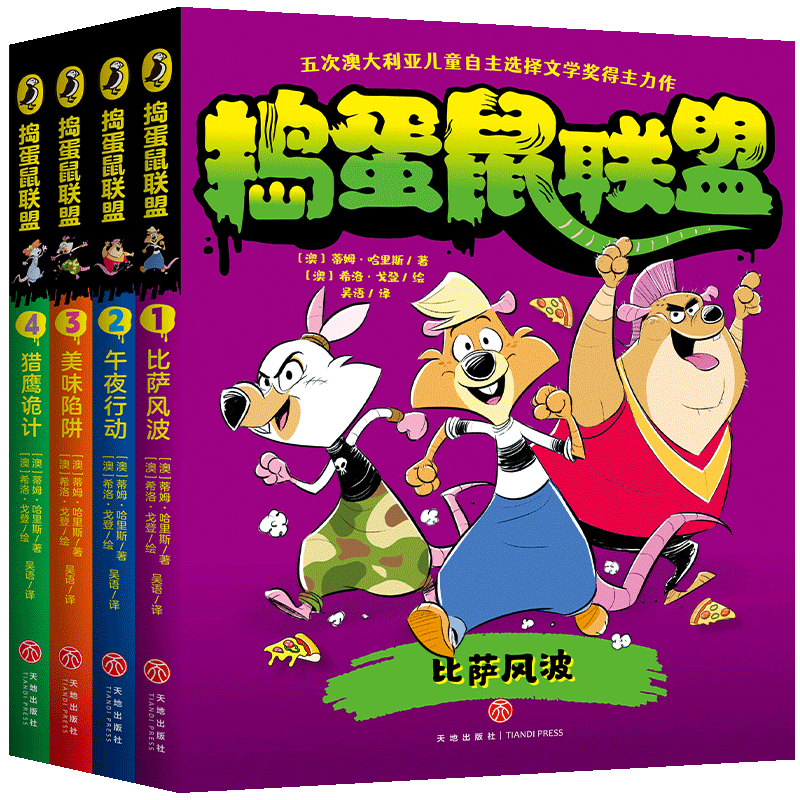 《捣蛋鼠联盟》是一套引进自澳大利亚的桥梁漫画书,目前已出版《比萨风波》《午夜行动》《美味陷阱》《猎鹰诡计》四册。该系列以一群个性鲜明的小老鼠为主角,讲述了一系列诙谐搞笑、惊奇又温暖的奇幻冒险故事。故事围绕“捣蛋鼠联盟”与善良的鼠小弟格奇展开——格奇崇敬人类、遵守规则,却意外与“捣蛋鼠联盟”中调皮大胆的瑞波、直爽贪吃的葱头结为好友。他们穿梭于城市的各个角落,经历了无数令人捧腹又惊险刺激的趣事。尽管格奇常被伙伴们“违反规则”的行为困扰,但他总能以机智与包容化解难题,让每次冒险都成为有惊无险的成长之旅。丛书采用“表情包”式夸张画风,角色神态生动,动作张力十足;语言简洁活泼、童趣盎然,极大增强了喜剧效果与阅读沉浸感;故事情节天马行空却逻辑自洽,不仅能激发孩子的想象力,更在潜移默化中培养逆向思维与解决问题的能力。作品自然融入友爱互助、善良勇敢等正向品质,让孩子在愉悦阅读中收获心灵的启迪与成长的力量。