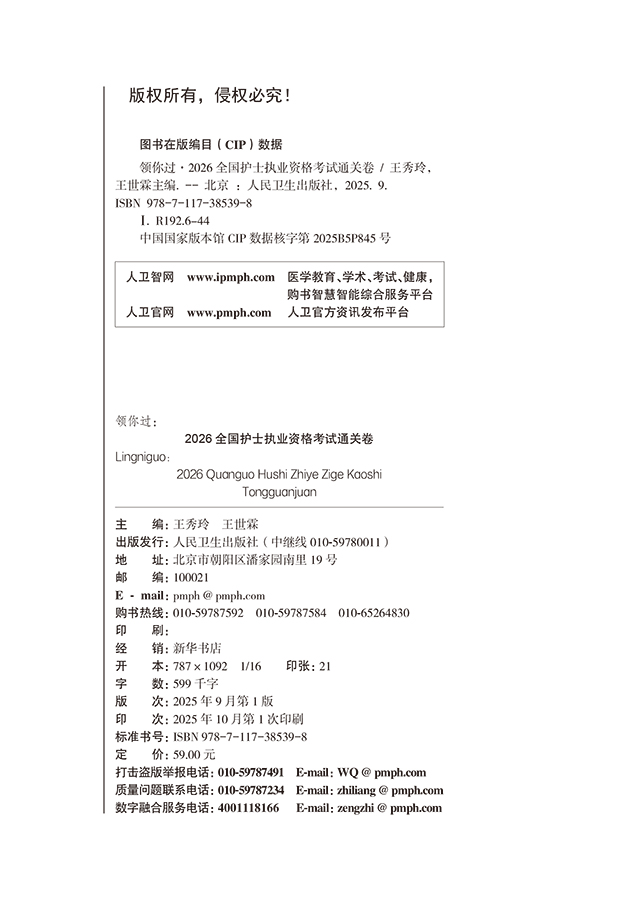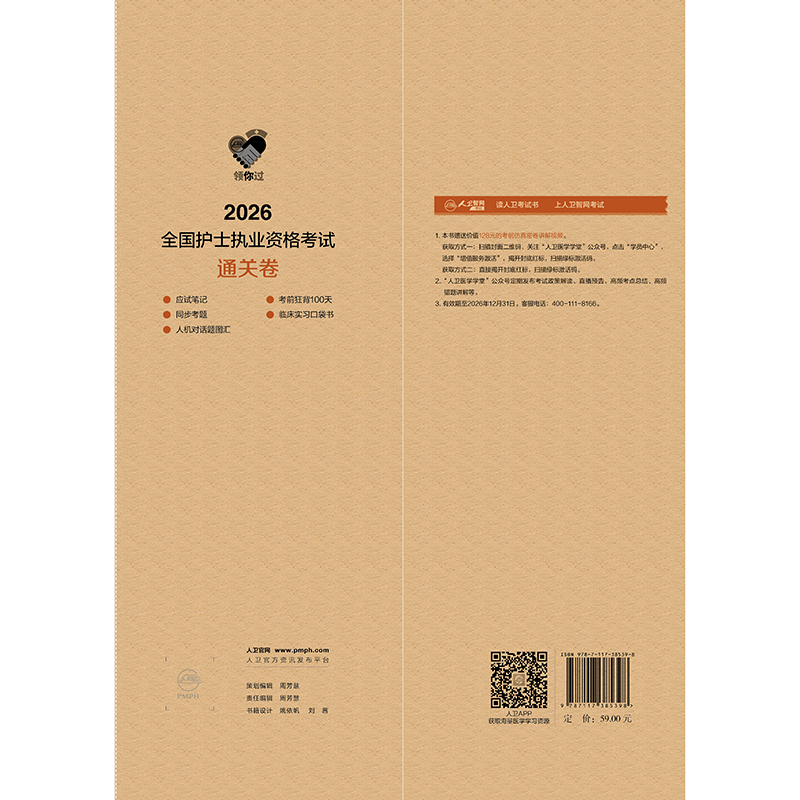 作者在对数千道考试真题分析研究的基础上精心编写了6套试卷,并配有详细解析,让考生通过做题进一步巩固重点难点。同时作者紧密围绕最新考试大纲,对2026年考情、考点进行了预测,让考生能了解出题的规律,提高复习效率。本书附赠“全国护士执业资格考试考点清单”,通过“关键词速记”“诊断公式”“对比记忆”“结构图”等形式,将同类考点归纳、对比,帮助考生提高复习效率。本书分为3大板块:“写在前面”对人机对话考试加以介绍,对答题方式和技巧进行重点指导。6套“通关卷”,涵盖人机对话实际考题,并融入对2026年护士执业资格考试的预测试题,使考生熟悉人机对话考试试题形式和内容。“考点清单”将同类考点进行归纳、对比,帮助考生巧记速记、冲刺提分。
