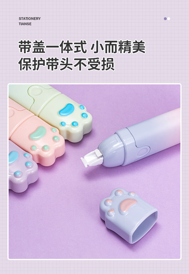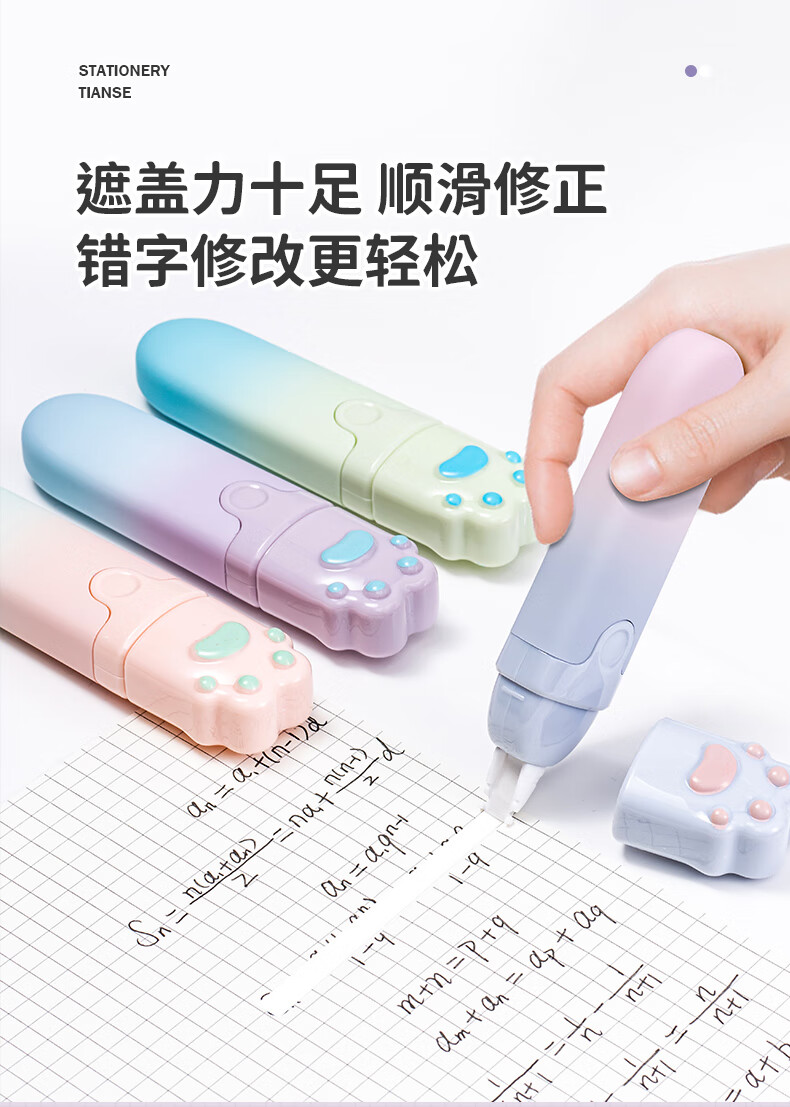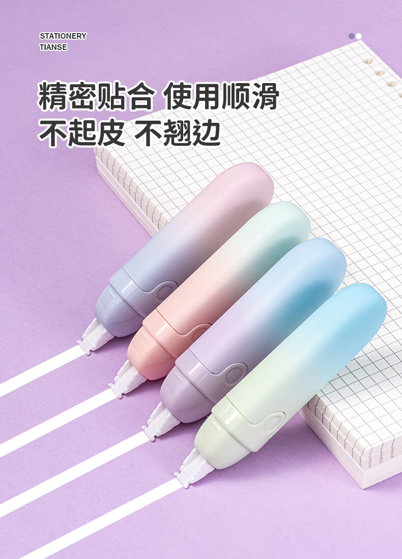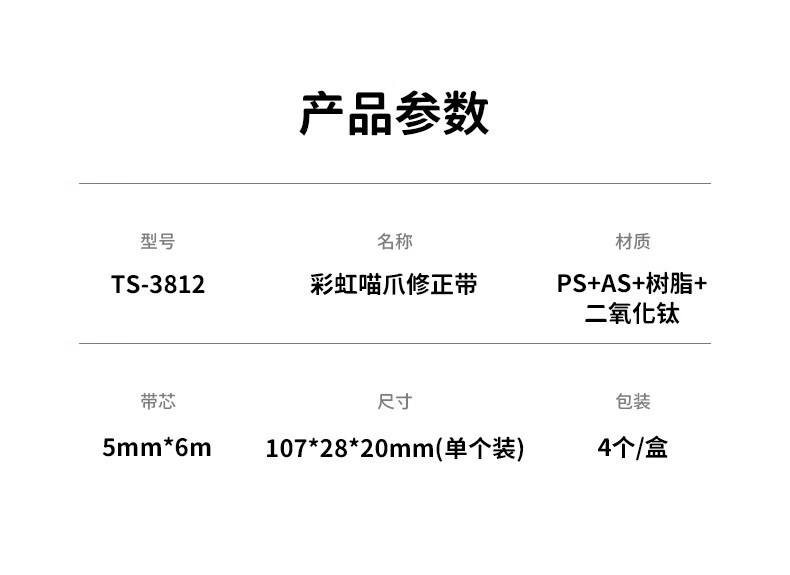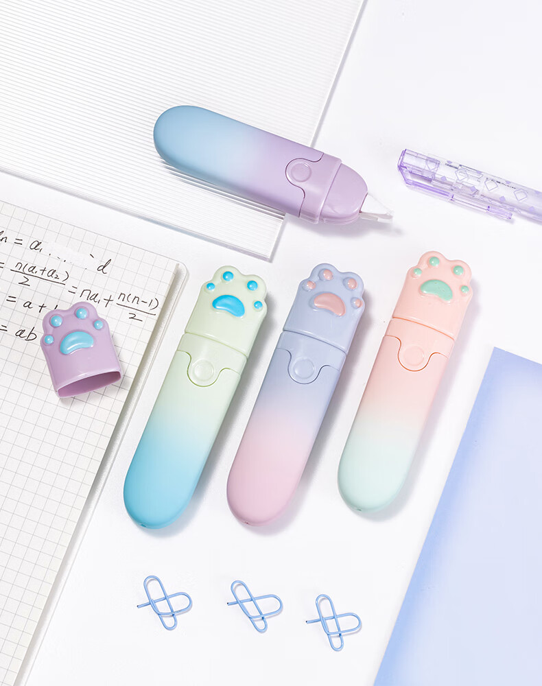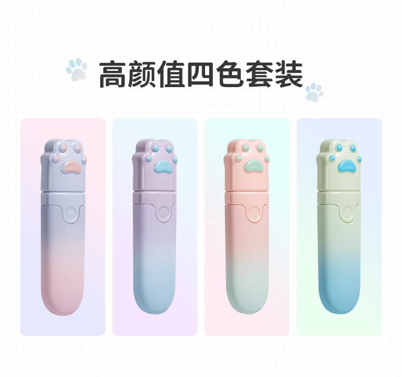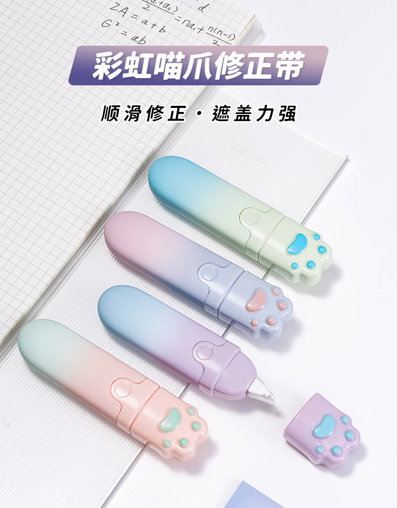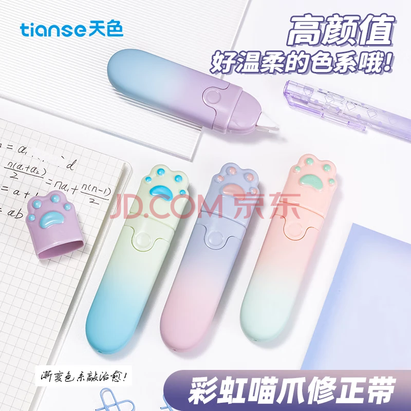 天色 高颜值渐变修正带 涂改带少女学生用改正带5mm宽修改带(4支/盒)TS-3812 彩虹猫爪