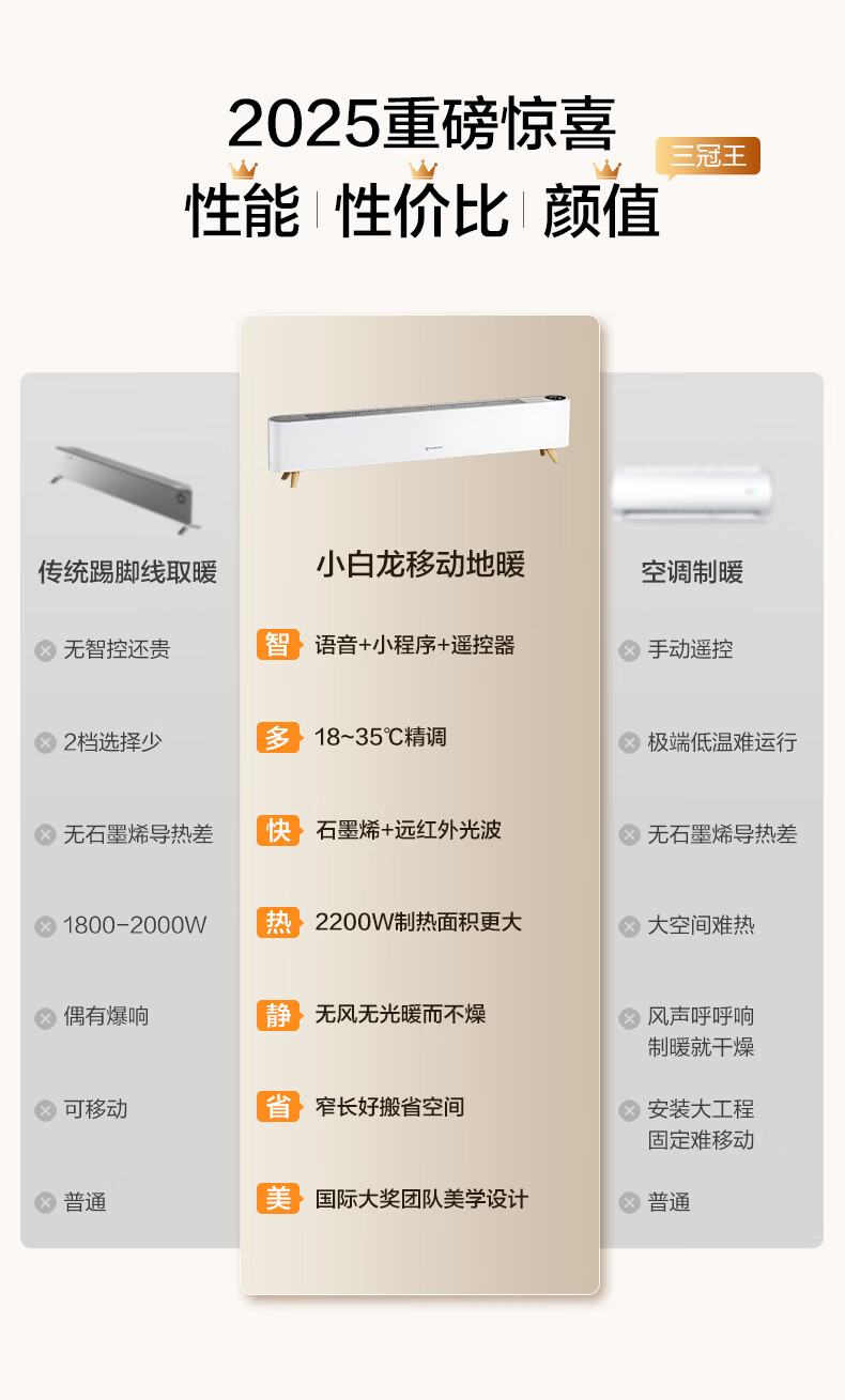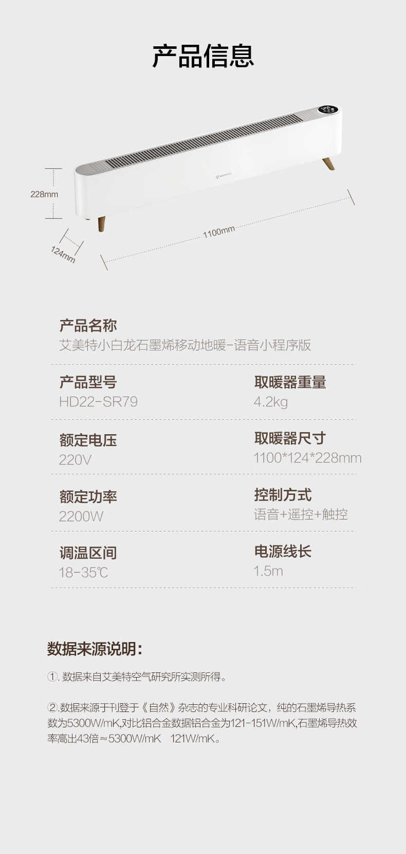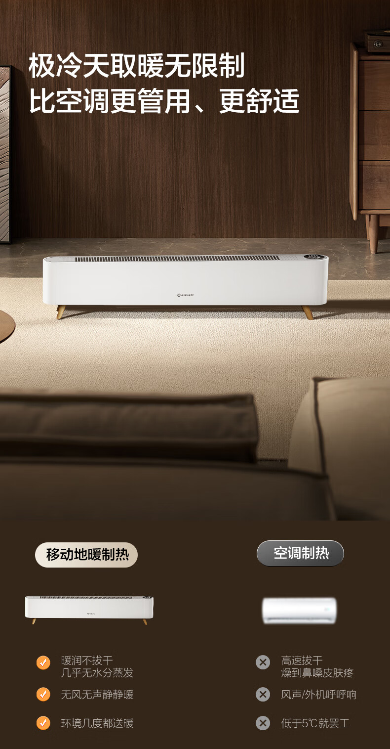 艾美特(AIRMATE)【热销爆款】石墨烯踢脚线/电热取暖器/
