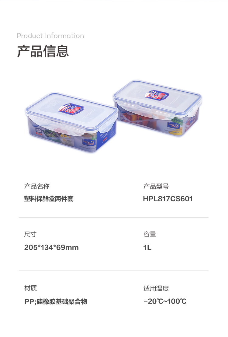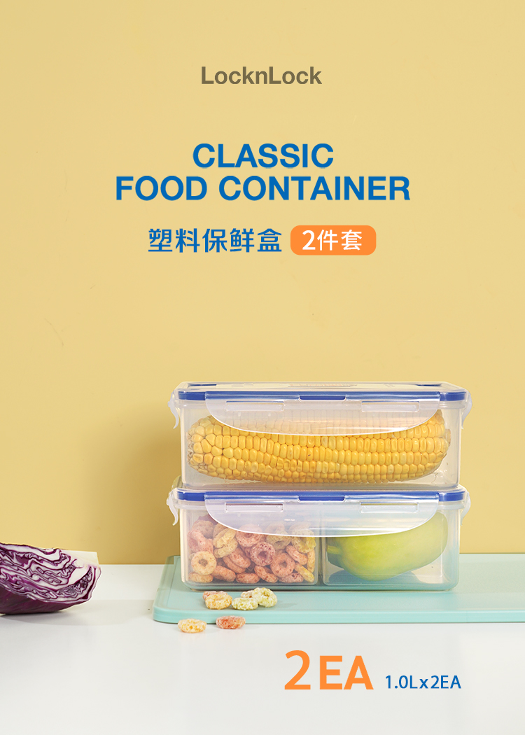 乐扣乐扣(LOCK&LOCK)塑料厨房分格保鲜盒密封保鲜厨具收纳储物盒2件套