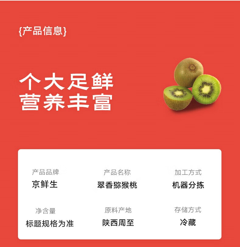 京鲜生 陕西翠香绿心猕猴桃 超大果16-18粒 单果约100-13