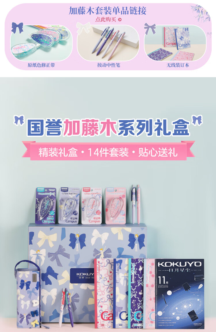 国誉(KOKUYO)加藤木蝴蝶结新年儿童礼物文具礼盒生日礼物修正带按动中性笔学生笔袋办公无线笔记本 WSG-BS001