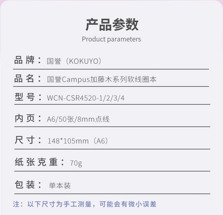 国誉(KOKUYO)A6/50张1本装软线圈本线圈本加藤木系列不