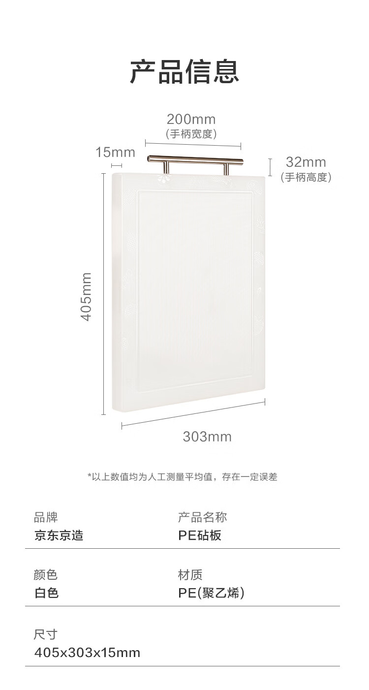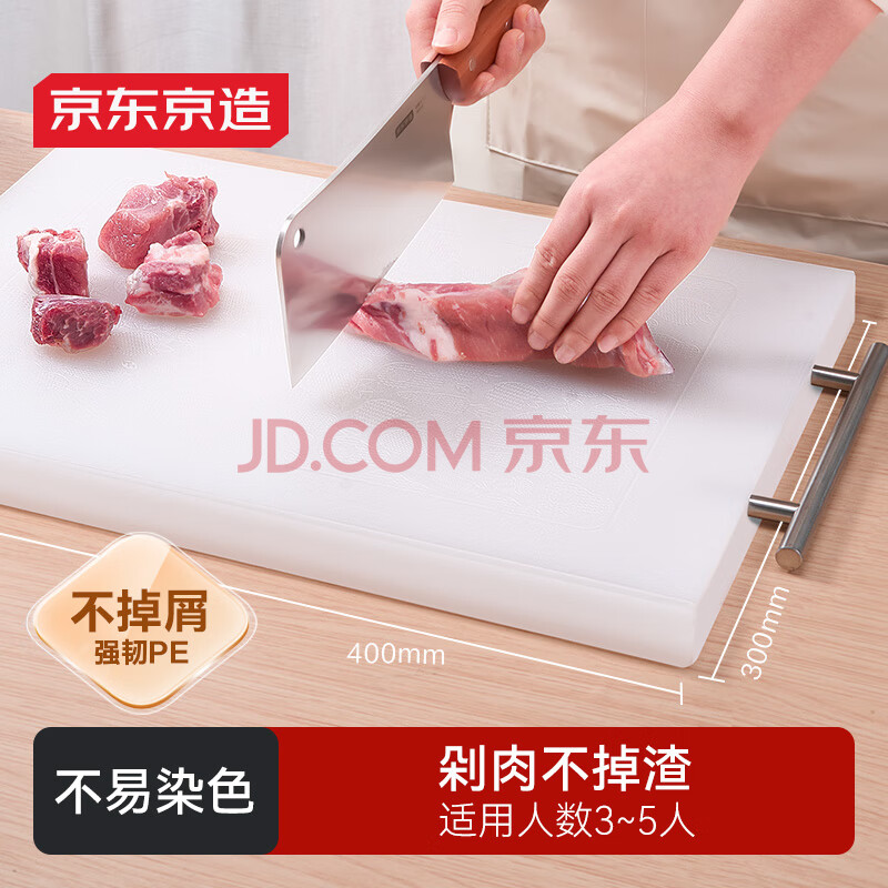 京造 菜板 砧案板切菜家用食品接触级双面分切PE加厚 白色40*30*1.5cm