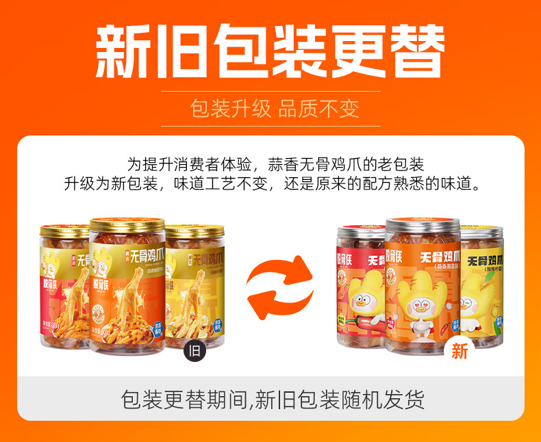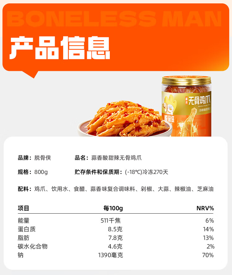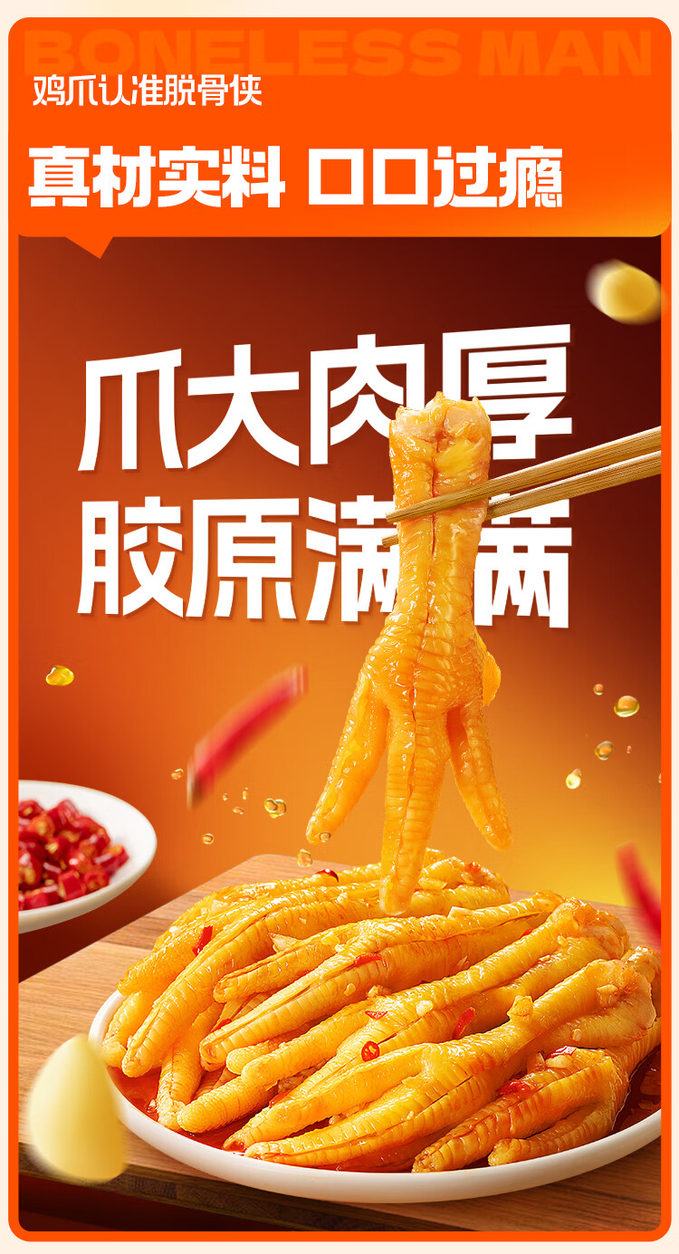 脱骨侠 无骨鸡爪蒜香酸甜辣味800g去骨凤爪网红零食夜宵熟食解馋下酒菜